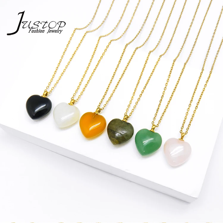 Wholesale Fashion Women Jewelry Natural Black Agate Stainless Steel Heart Pendant Designer Charms for Jewelry Making Necklace