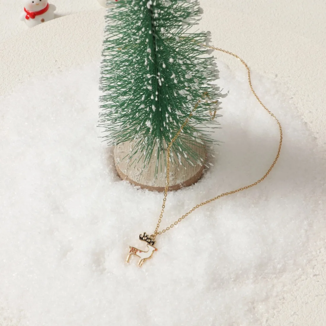 15 Design Christmas Necklaces Enamel Charms Deer Tree Wreath Candy Cane Bell Santa Necklace Trendy Xmas Party Jewelry