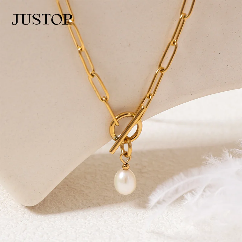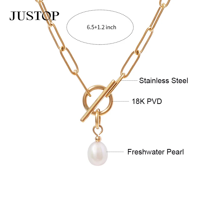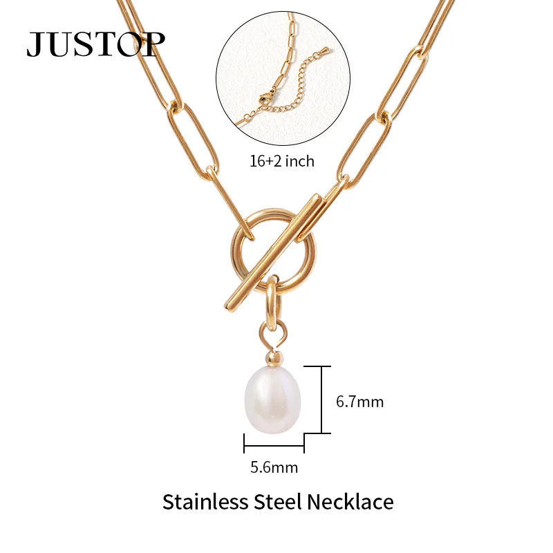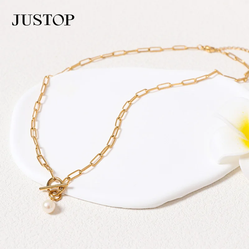 Minimalist 18K Gold PVD Stainless Steel Necklace Lock Charm Buckle Pearl Pendant Cute Women's Choke Ring-Pearl Necklace Gifts