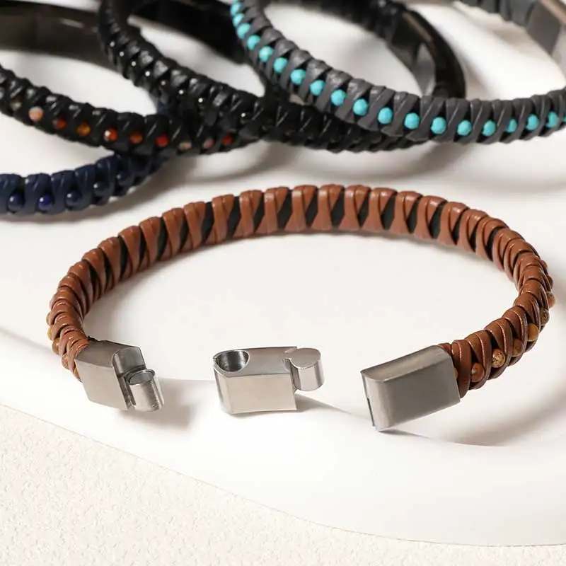 Accessories Trendy Stainless Steel Beaded Multilayer Braided Rope Handmade Custom Men's Gift Bracelet