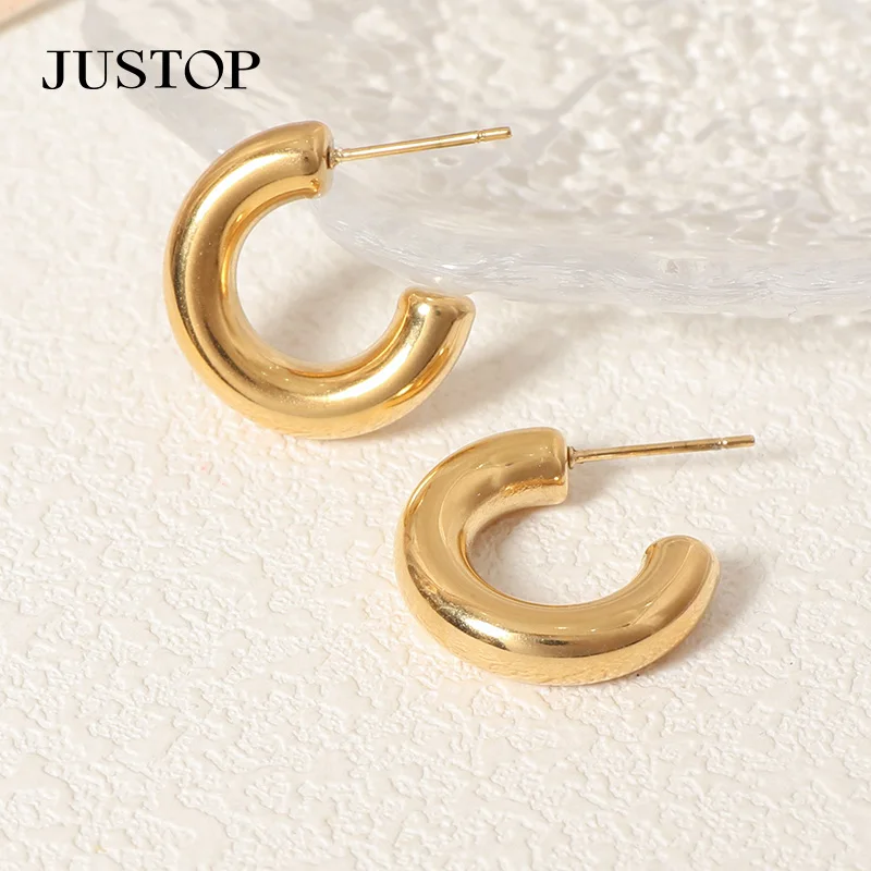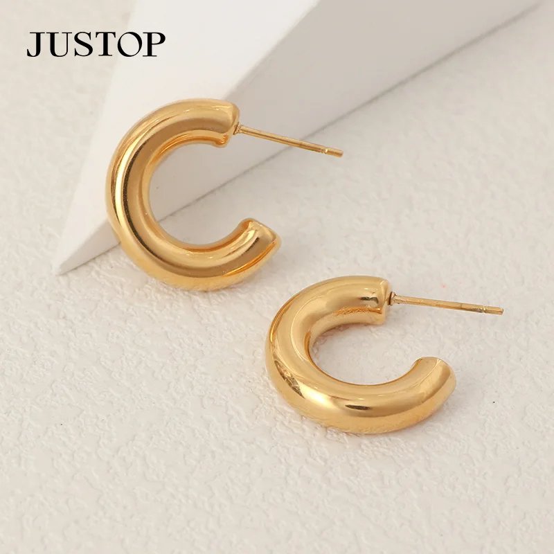 Minimalist Designer Jewelry CC Shape 18K PVD Stainless Steel Earrings Waterproof Gold Plated Chunky Hoop Jewelry