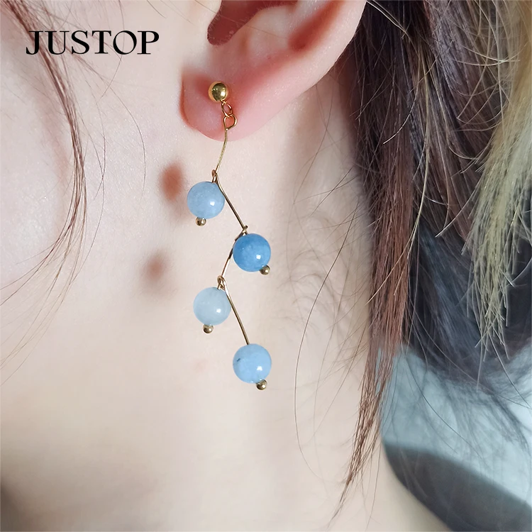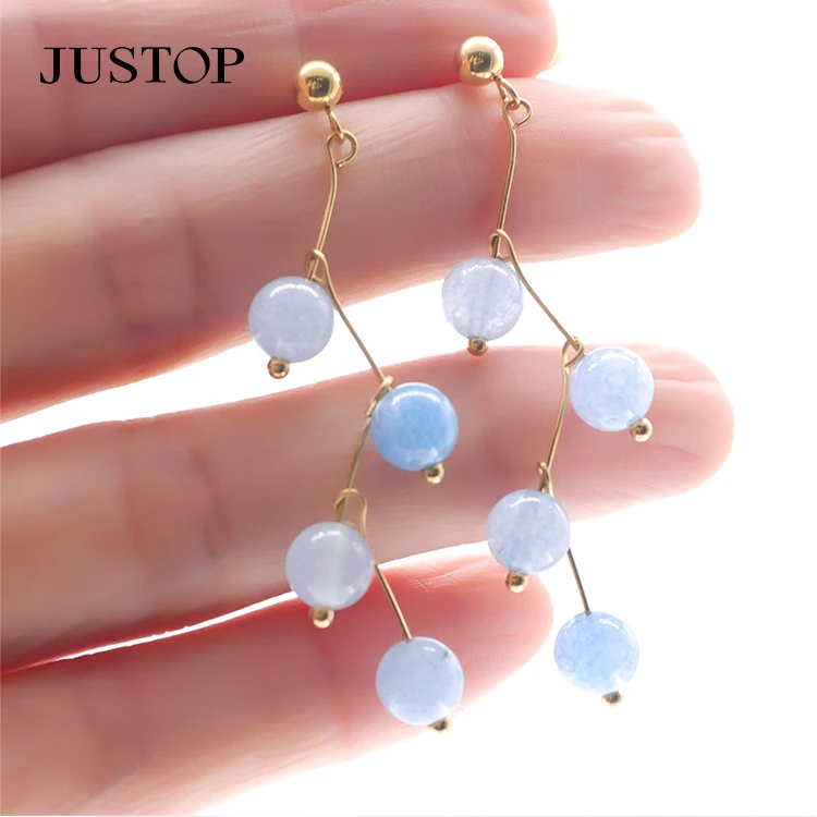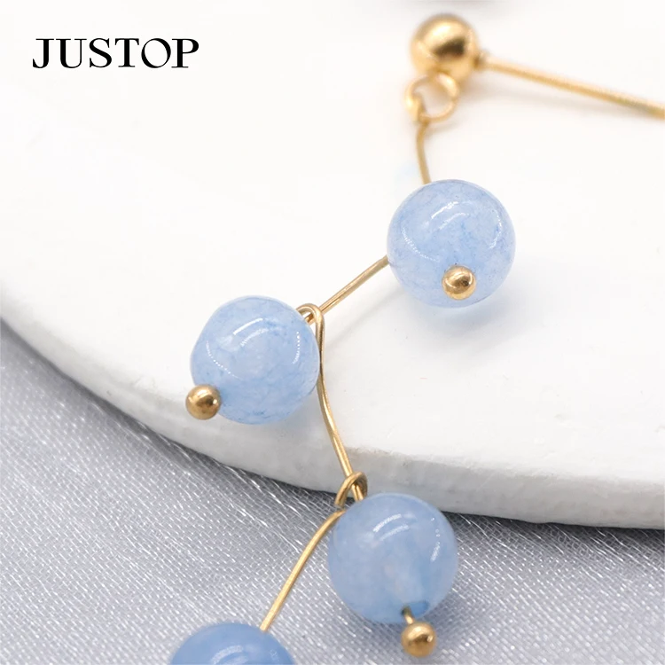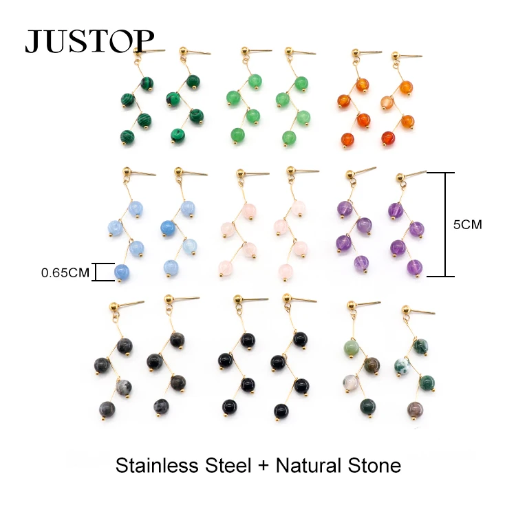 Fashion Beaded Tiger Eye Stud Stone Black Agate Colorful Yoga Pendant Trendy Stainless Steel Drop Earrings for Women 18K Gold