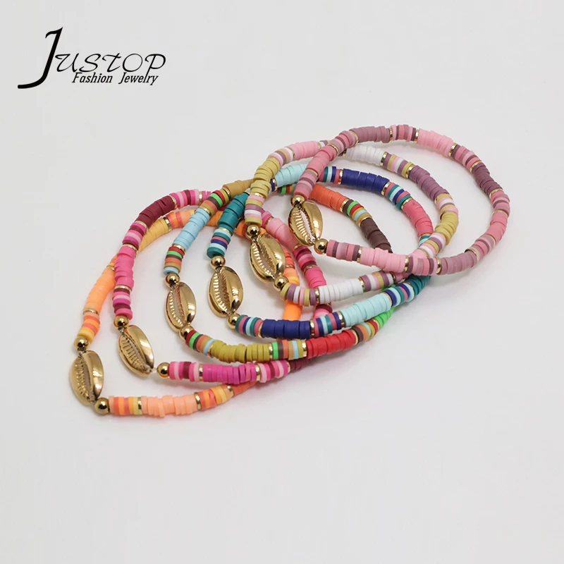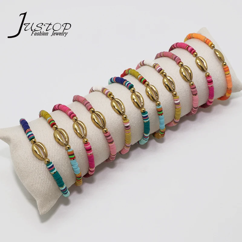 Adjustable Summer Vacation Beach Bohemia Women Hawaiian Style Handmade Stainless Steel Hand-Woven Seed Beads Sea Shell Bracelets
