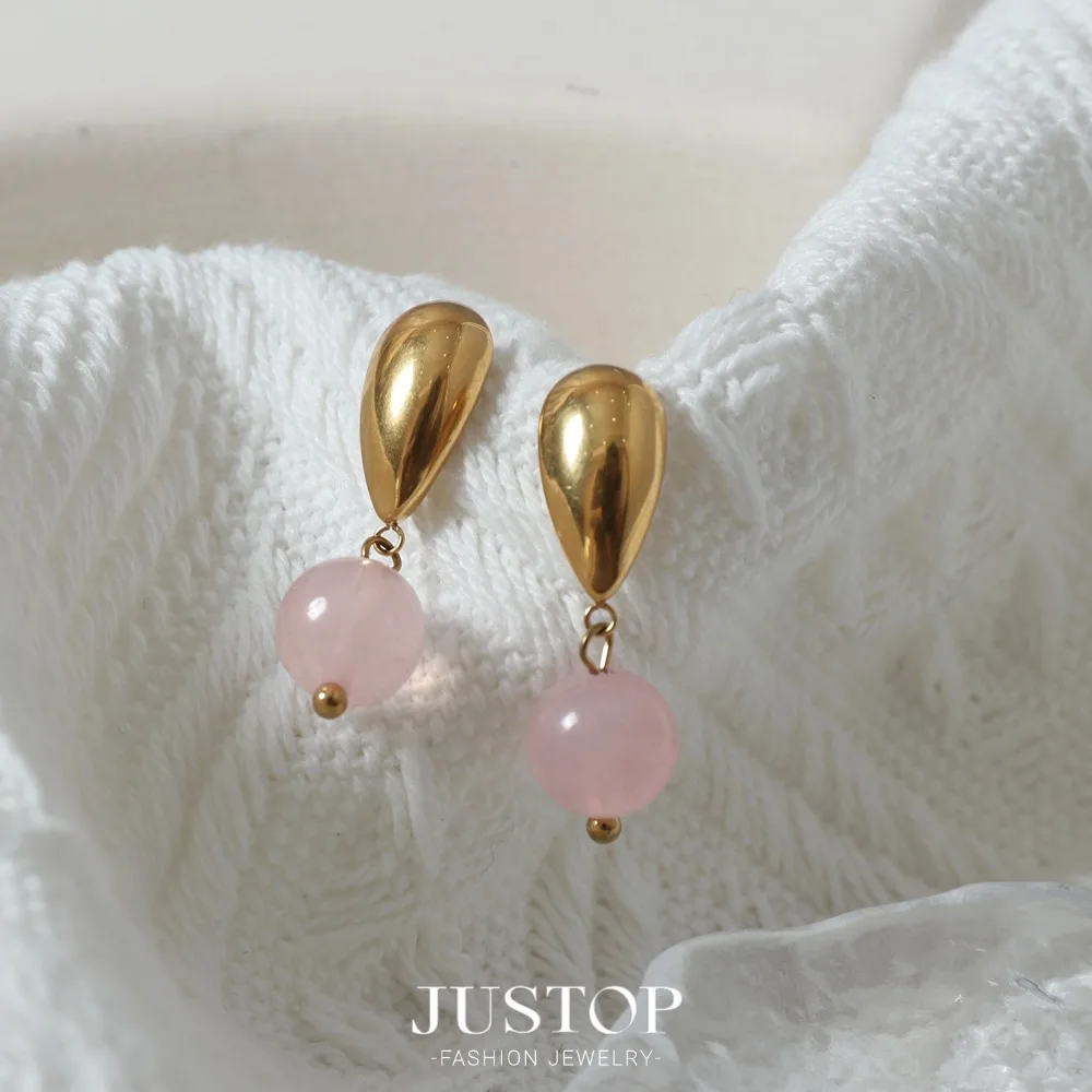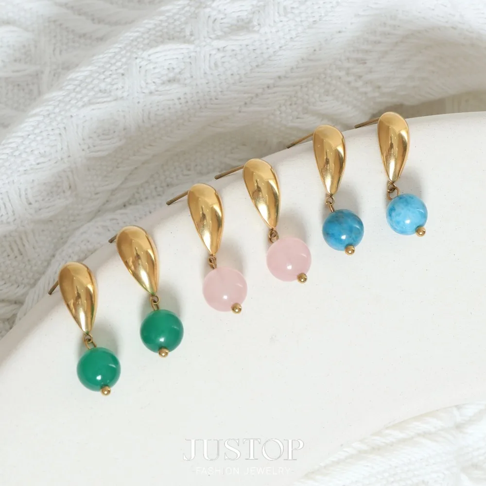 Turquoise Stone Ball Pendant & Waterdrop Earrings Stainless Steel PVD Plated Waterproof Stud Women's Fashion Jewelry Gift