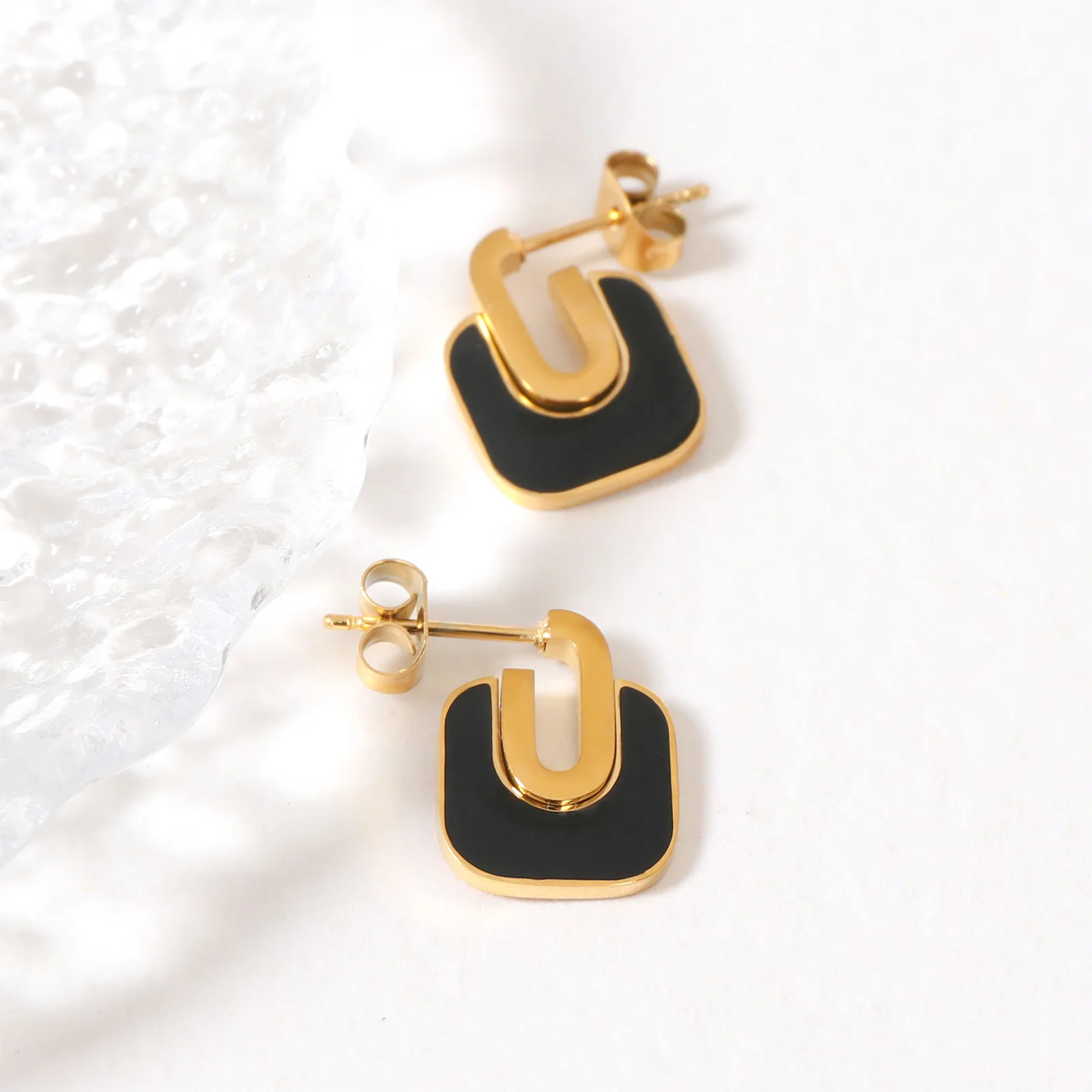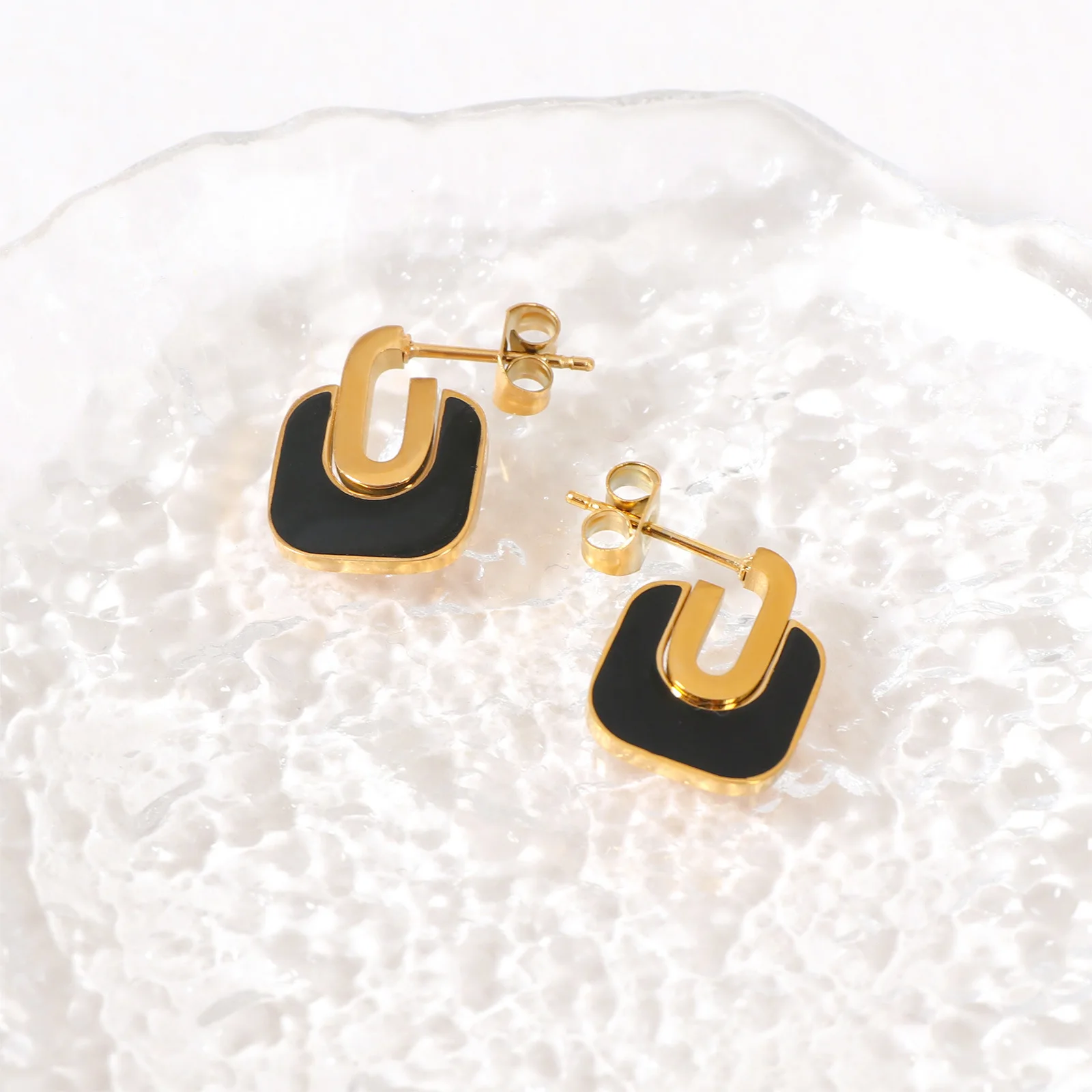 Fashion U Shaped Retro Oil Dripping Stainless Steel Stud Earrings for Women Stylish Geometric Butterfly Shape 18K Gold Plated