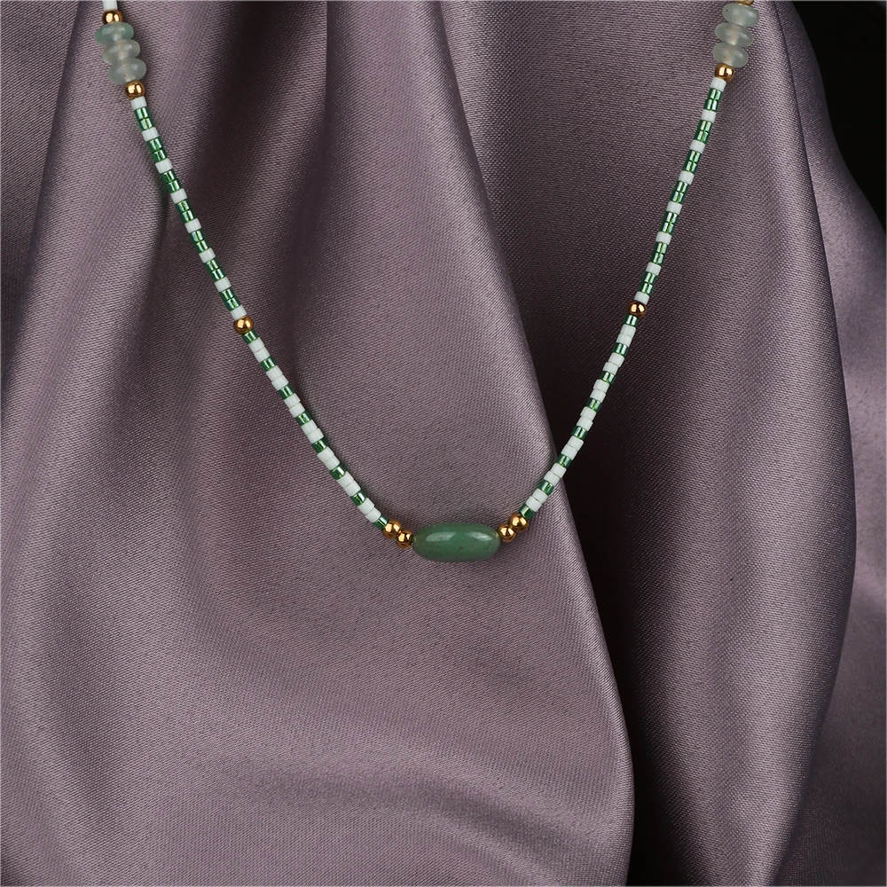 Custom TRENDY Multiple Options Gemstone Chokers Fashion Green Aventurine Necklace Crystal Natural Stone Beaded Necklaces