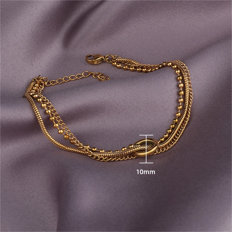 Trendy 3 Layers Fashion Small Ball Chain Link Waterproof PVD Bracelet Charm 304 Hypoallergenic Party Jewelry Pendant for Women