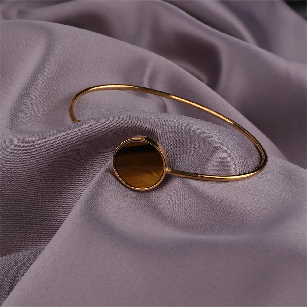 Italian Charm Bangle Bracelet Natural Stone Coin in Black Agate and Green Turquoise Fashion Birthstone Bracelet