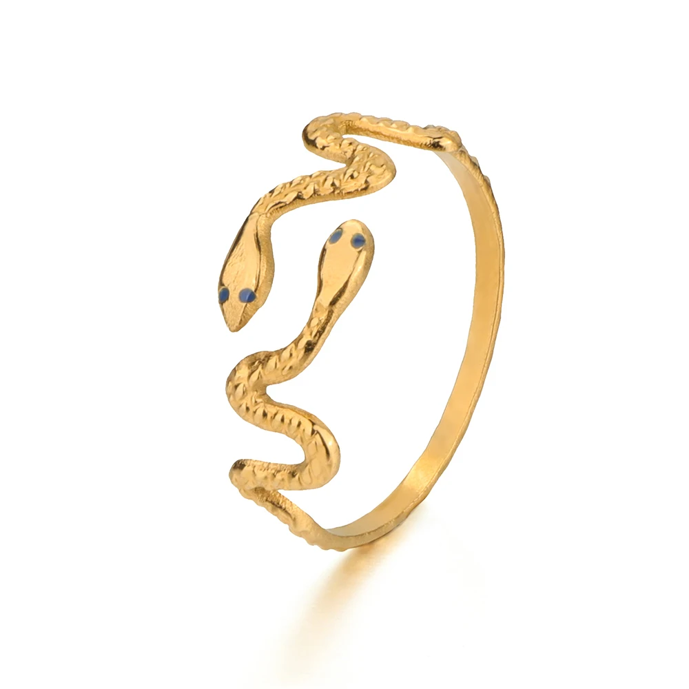 Open Cuff Snake Finger Ring Real 18K Gold Plated Stainless Steel Fashion Jewelry Dripping Oil for Women Wedding Engagement Party