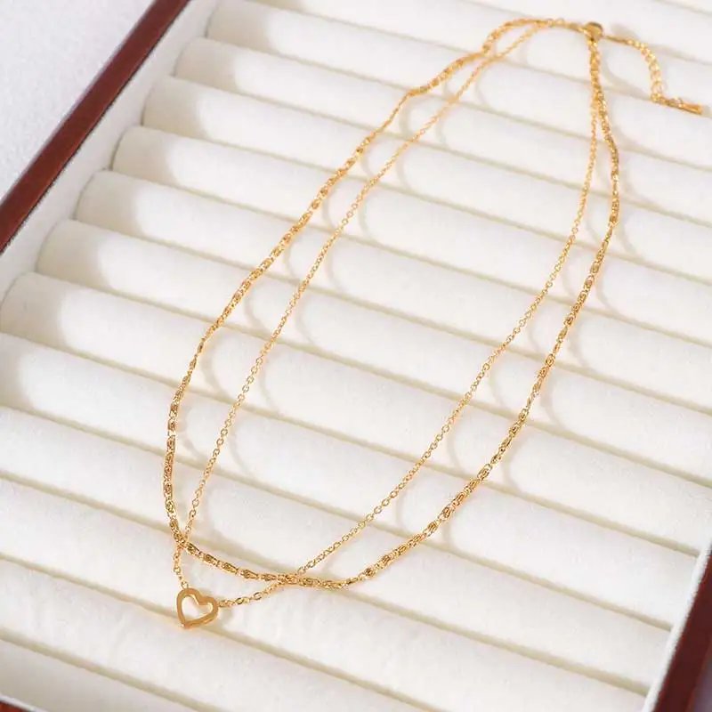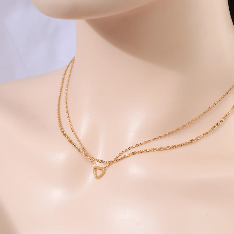 Wholesale Waterproof PVD Plated Women's Stainless Steel Short Choker Necklace Fashion Jewelry with Heart Logo