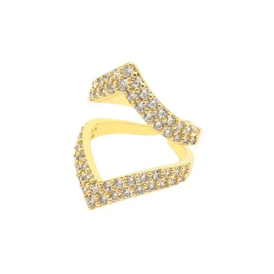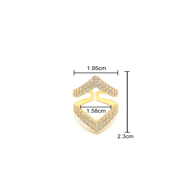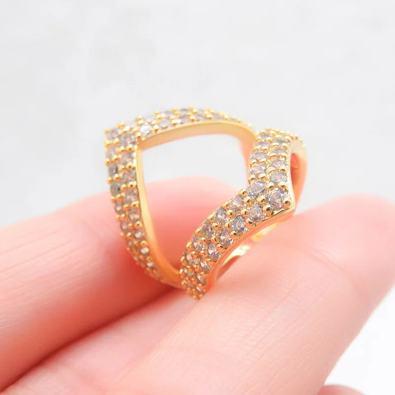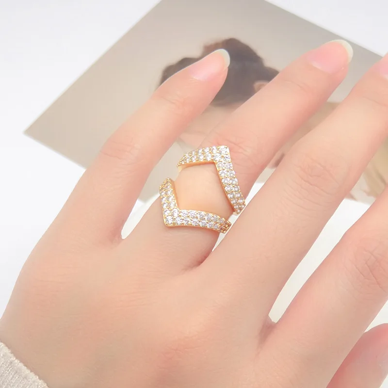 Niche Design High Quality Gold-Plated Wedding Ring V-shaped Rhinestone Heart-Shaped Micro-Infused All-Match Alloy Jewelry Zircon
