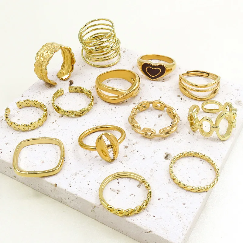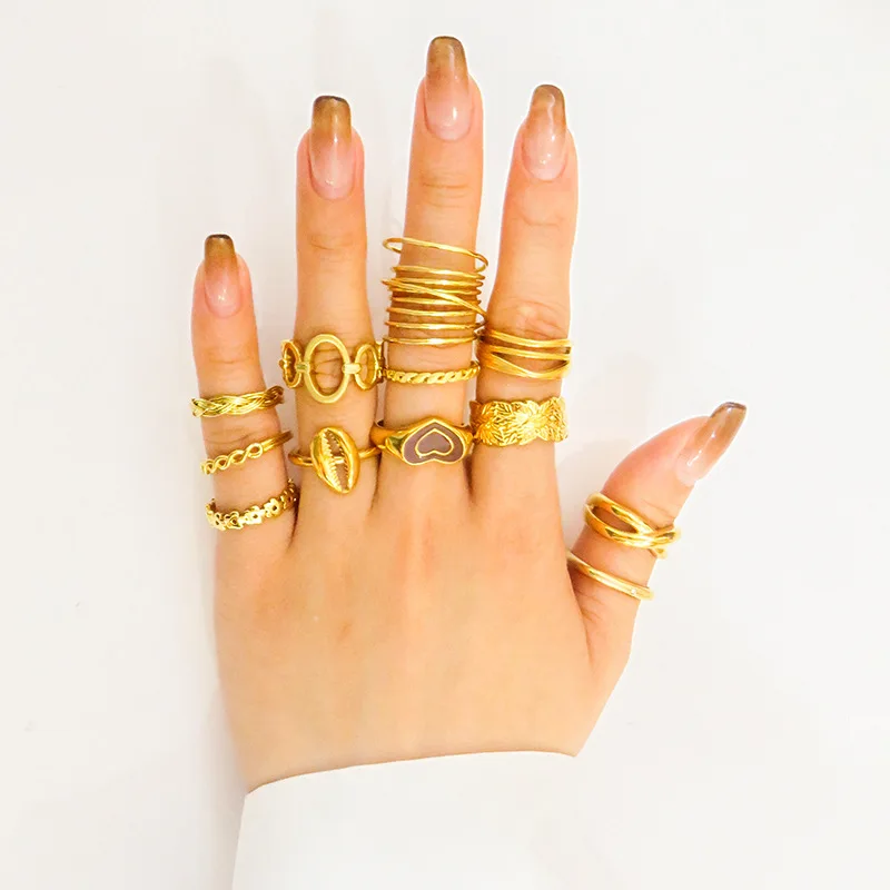 Europe and United States Cross-Border Wholesale of Simple Stainless Steel Love Ring Multi-Joint Open Ring with Drop Oil Niche
