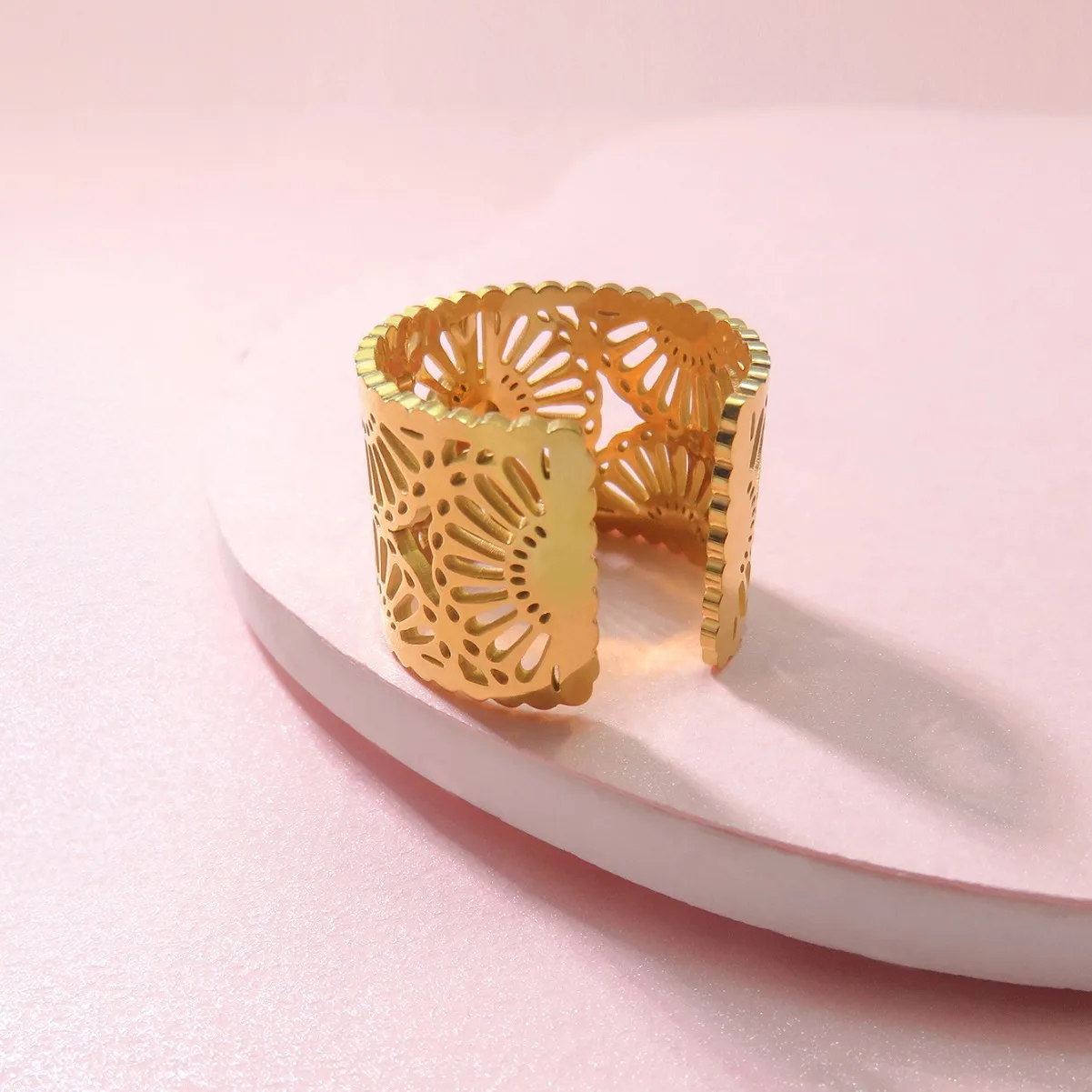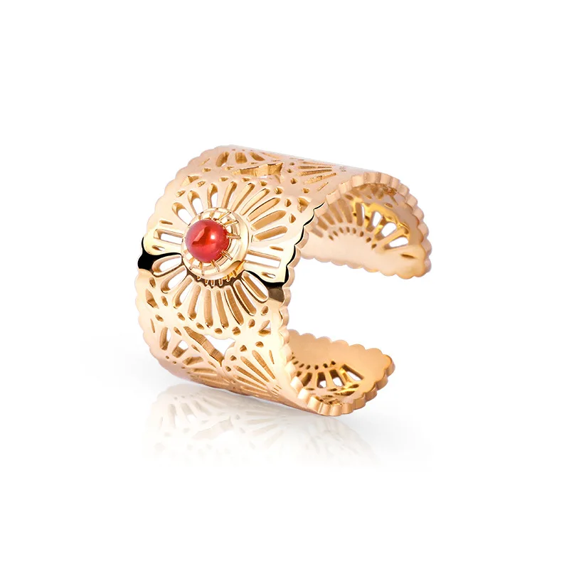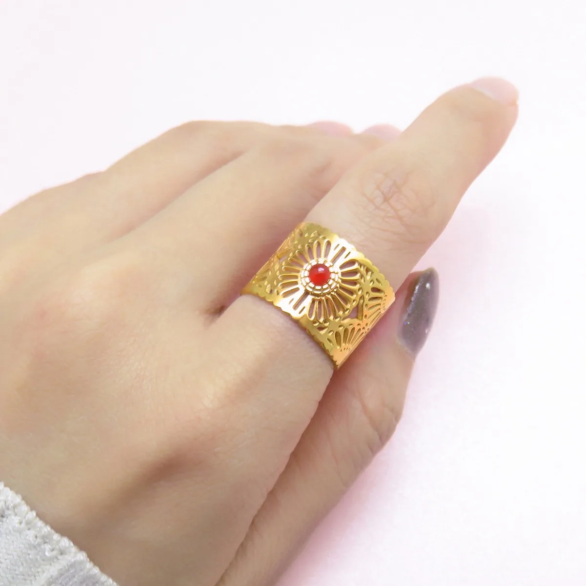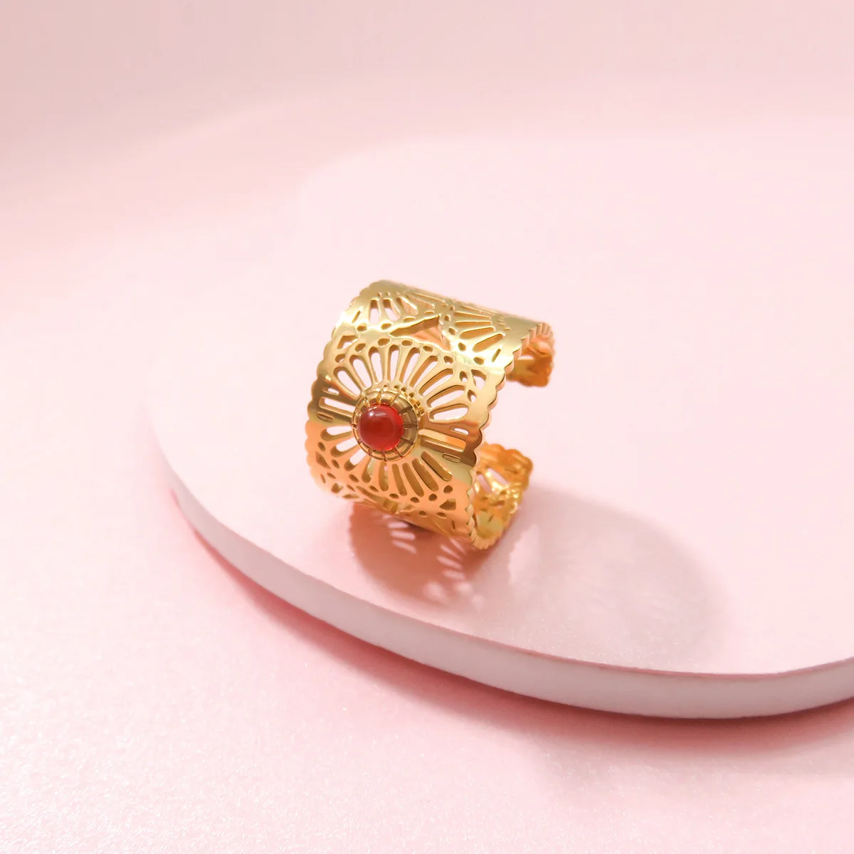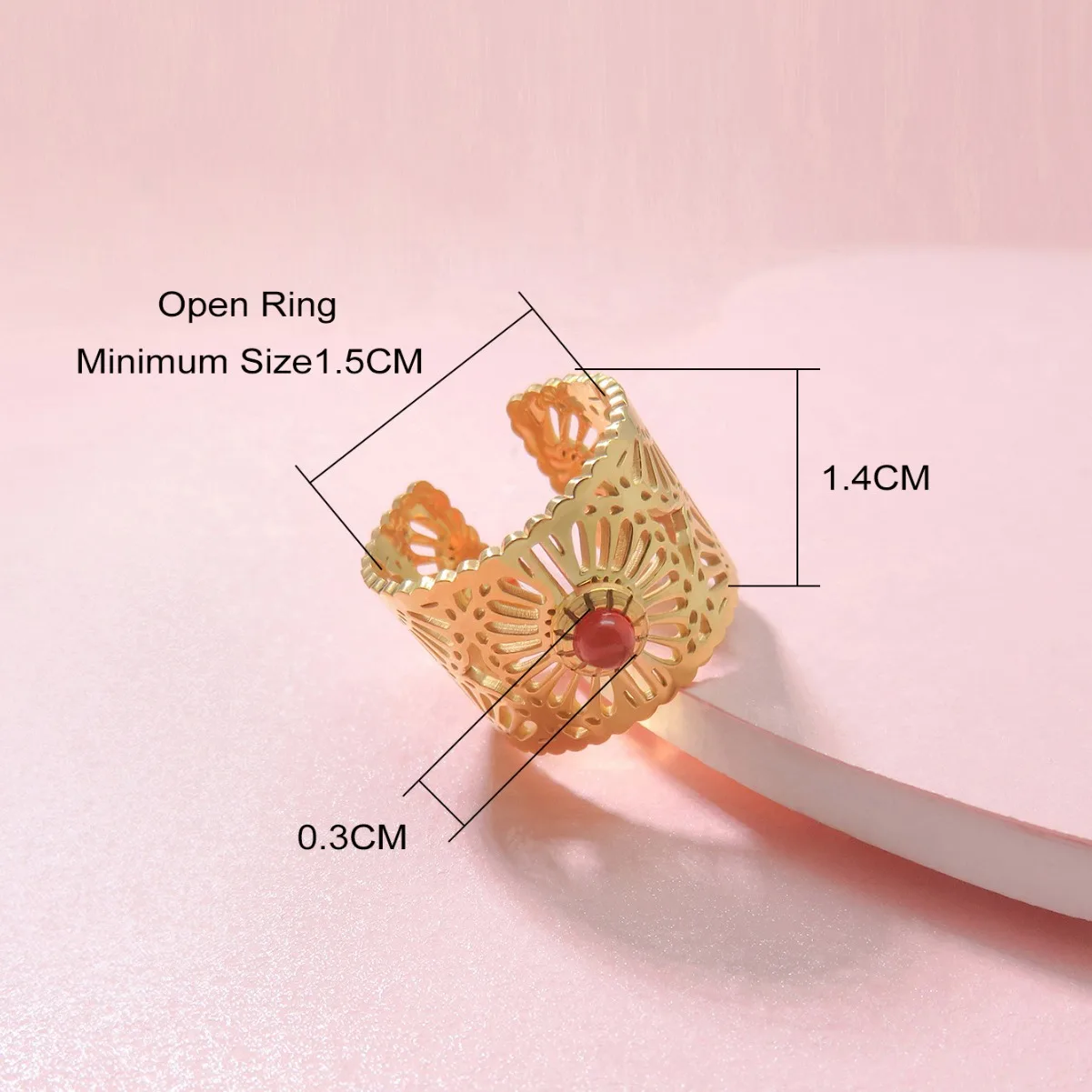 European American Elegant Retro Women's Open Ring All-Match Cross-Border Fashion Jewelry Natural Stone Inlay Stainless Steel