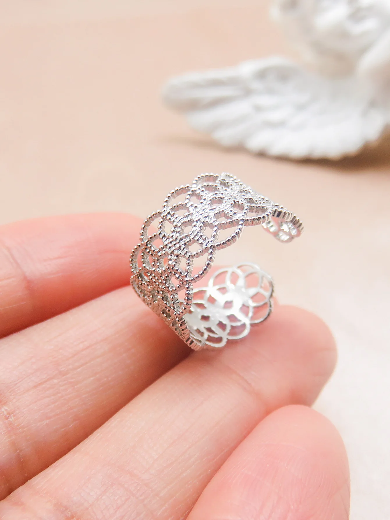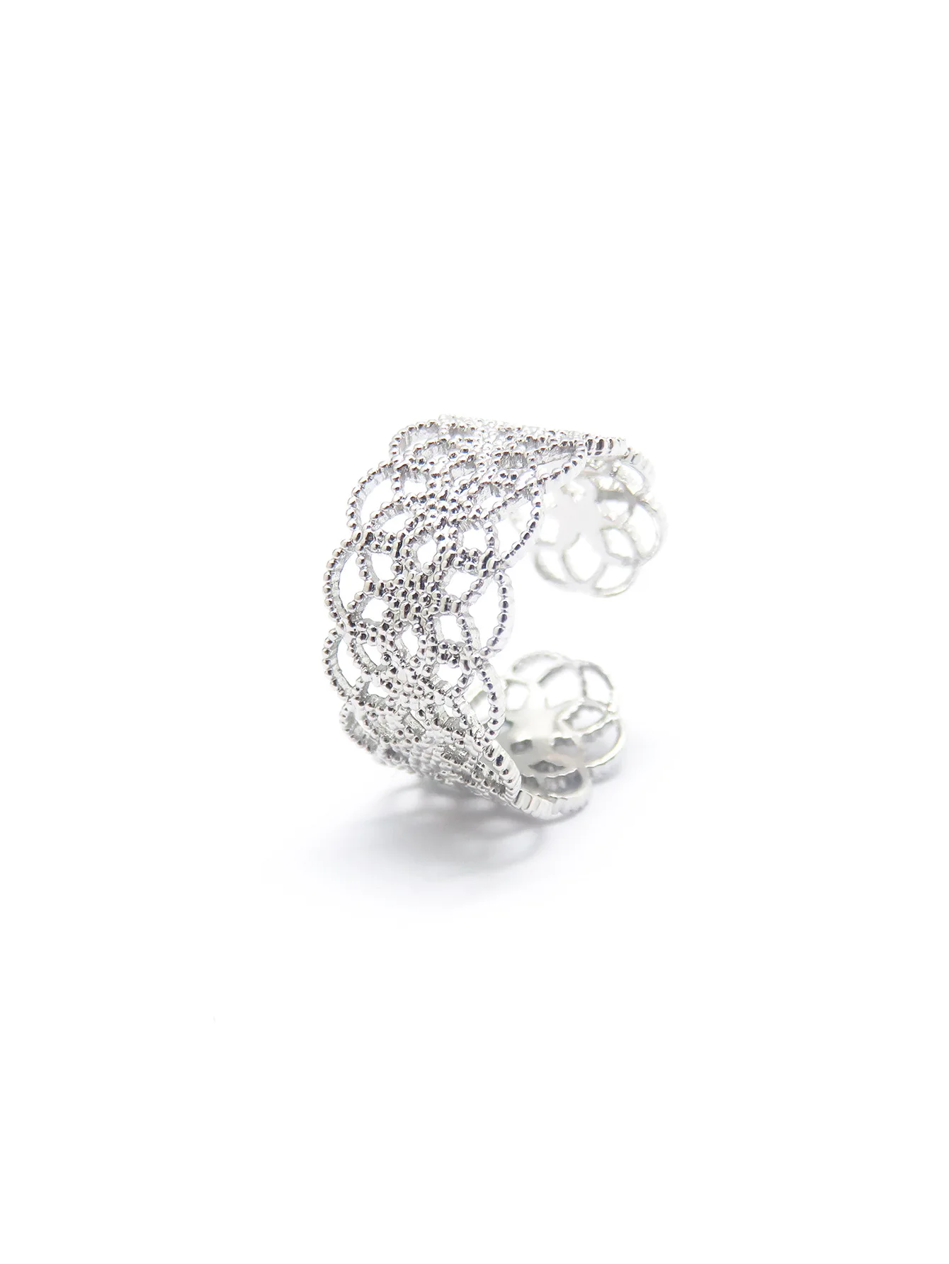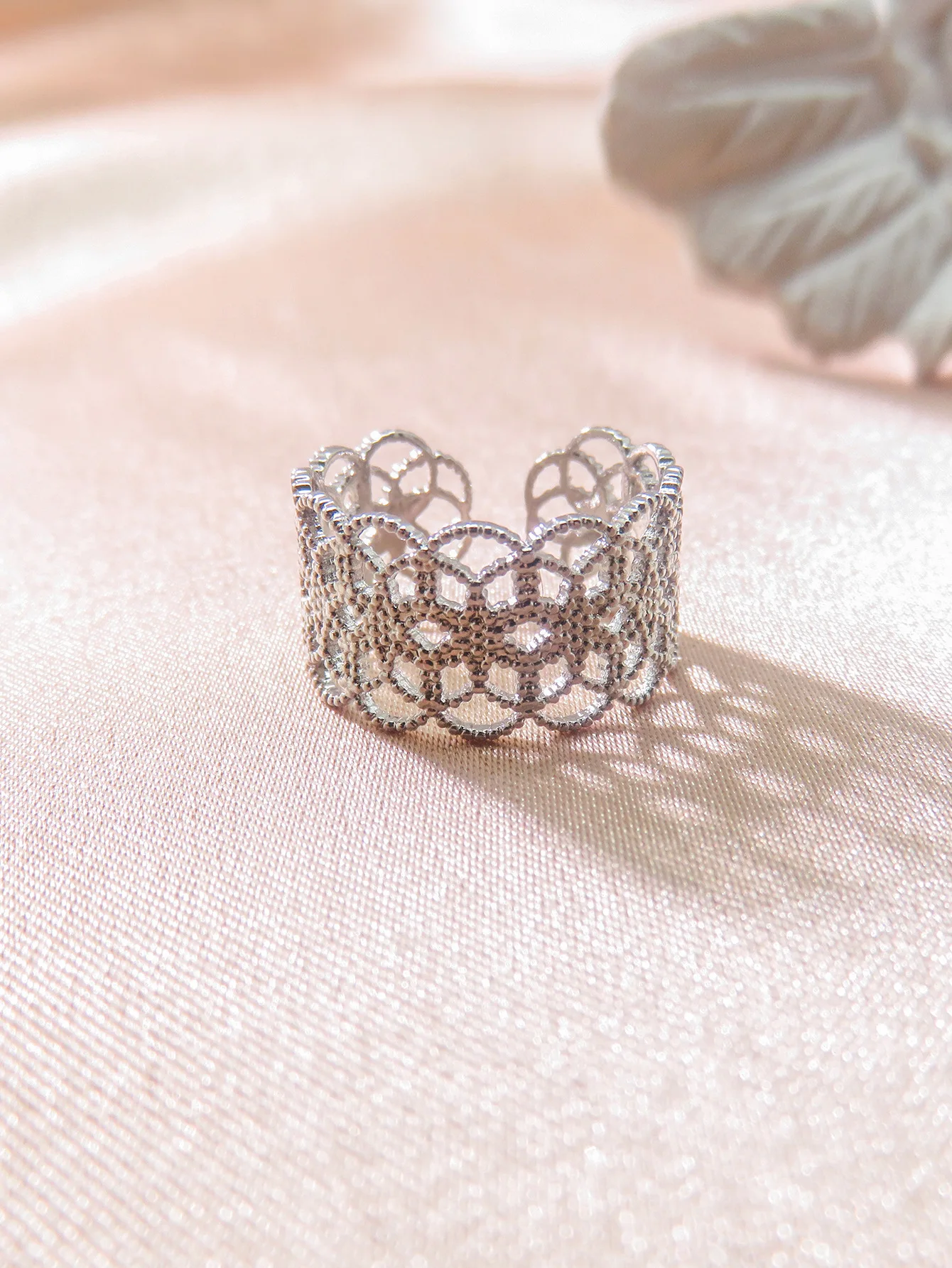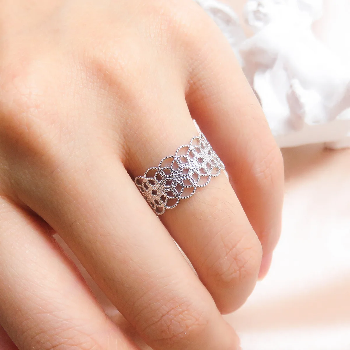 Women's Elegant Open Ring Exquisite Silver Hollow Flower with Zircon New Fashion Korean-Style European American-Style Fine Rings