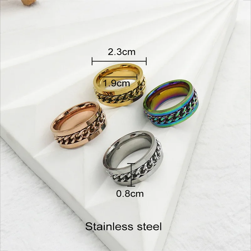 Men's Stainless Steel Rotatable Ring Fashionable Hip-hop Cuban Chain Bracelet for Wedding Decompression for Wine Bottle Opening