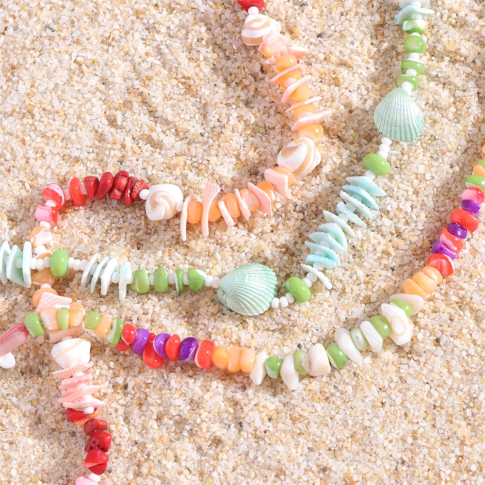Elegant Natural Shell Necklace with 18K Gold Plated Stainless Steel Chain Handmade Colorful String Rope Chic Accessory