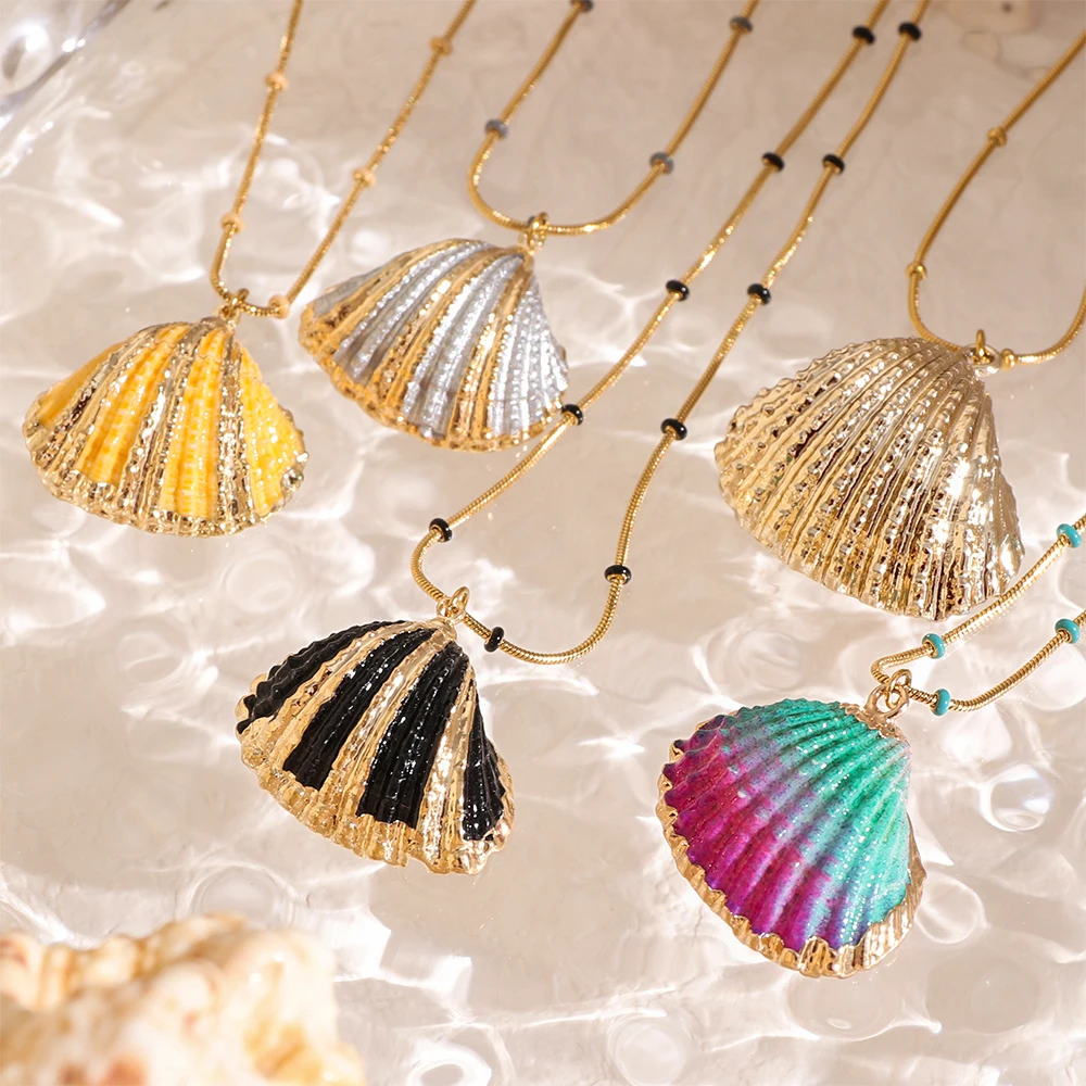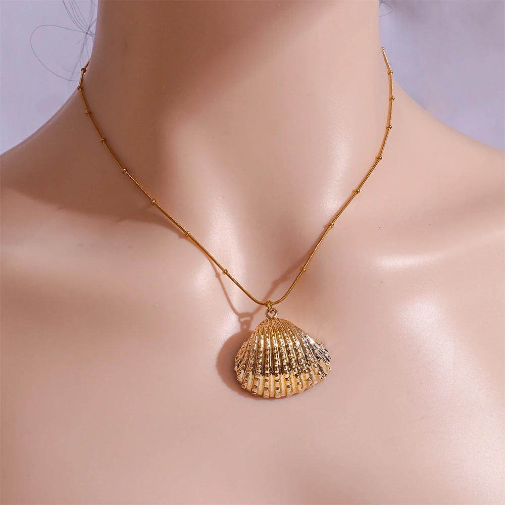 Vibrant Luxury 18k Gold Plated Stainless Steel Natural Shell Charm Pendant Necklace Link Trendy Fashion for Unisex Anniversary