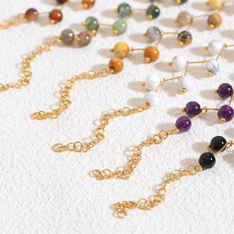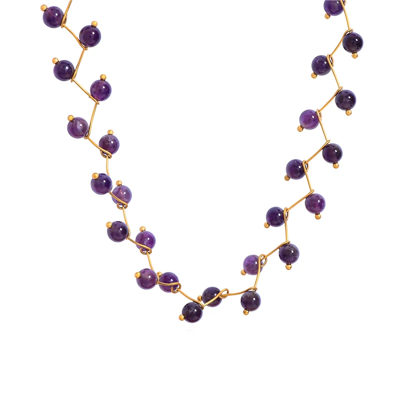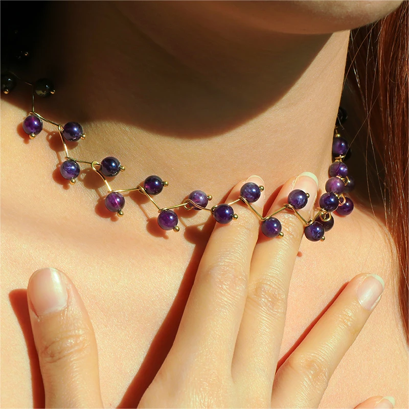 Grape Link Chain Unique Designer Choker Short Healing Natural Crystal Semiprecious Stone Bead Jewelry Necklace Stainless Steel