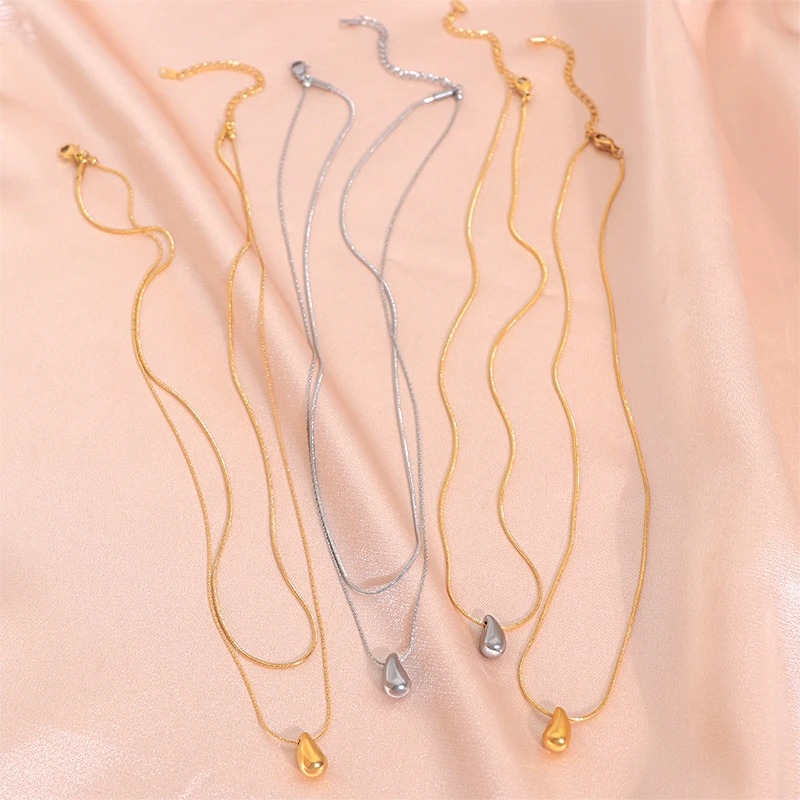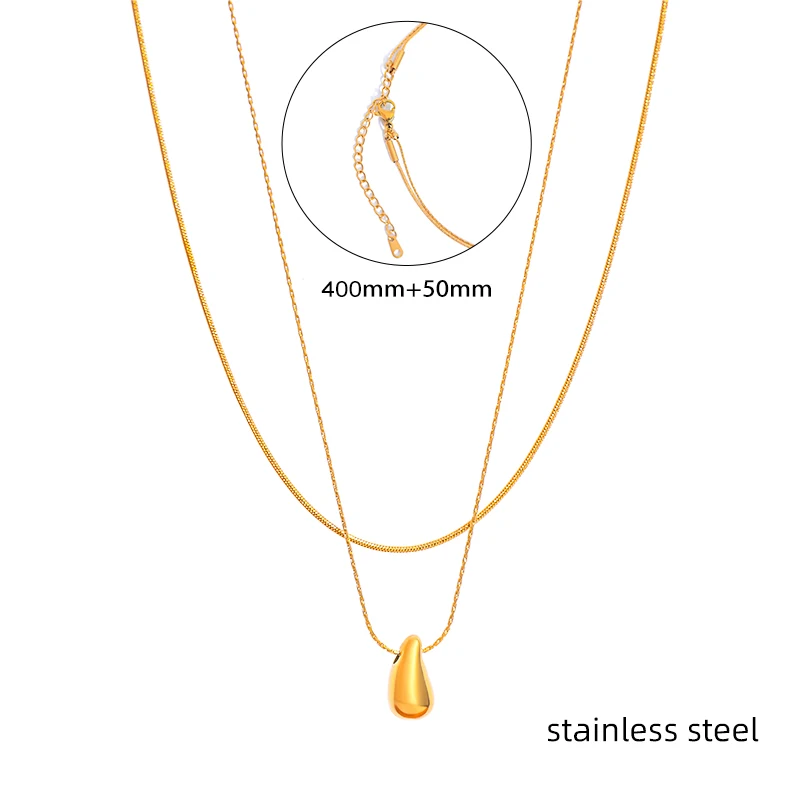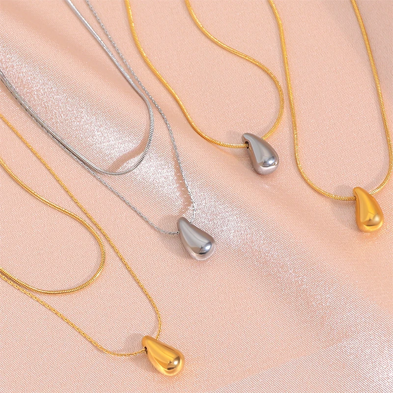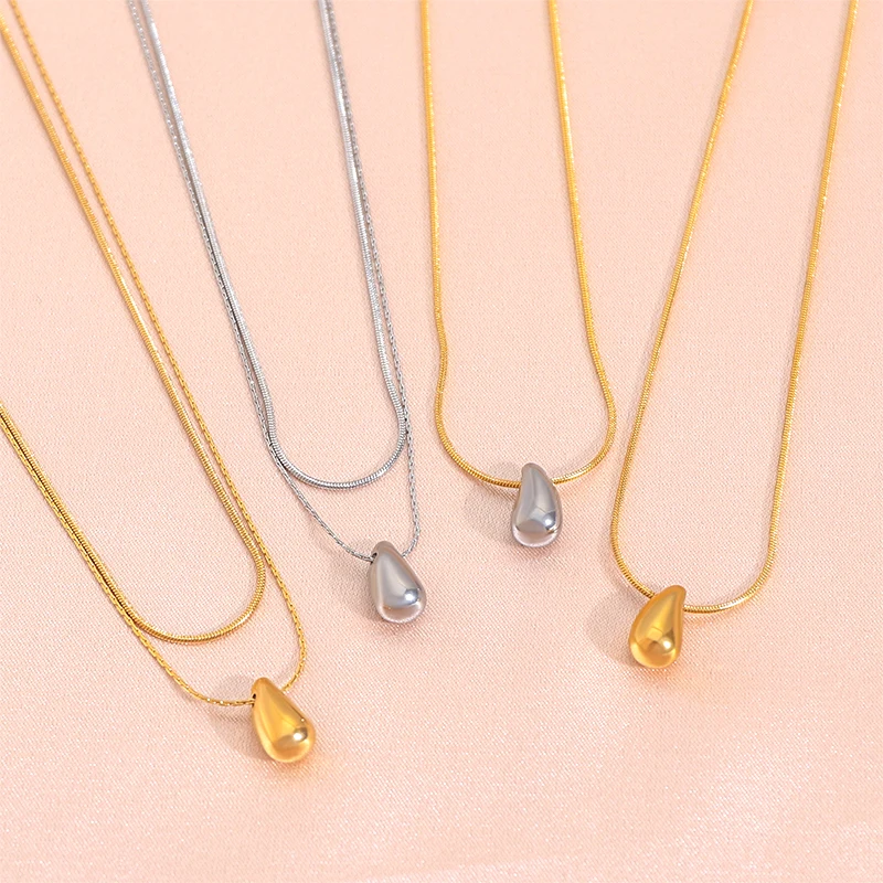 Waterproof IP PVD Hollow-out Water-Drop Pendant Necklace 18K Gold Plated Round Snake Chain Titanium Steel Necklace