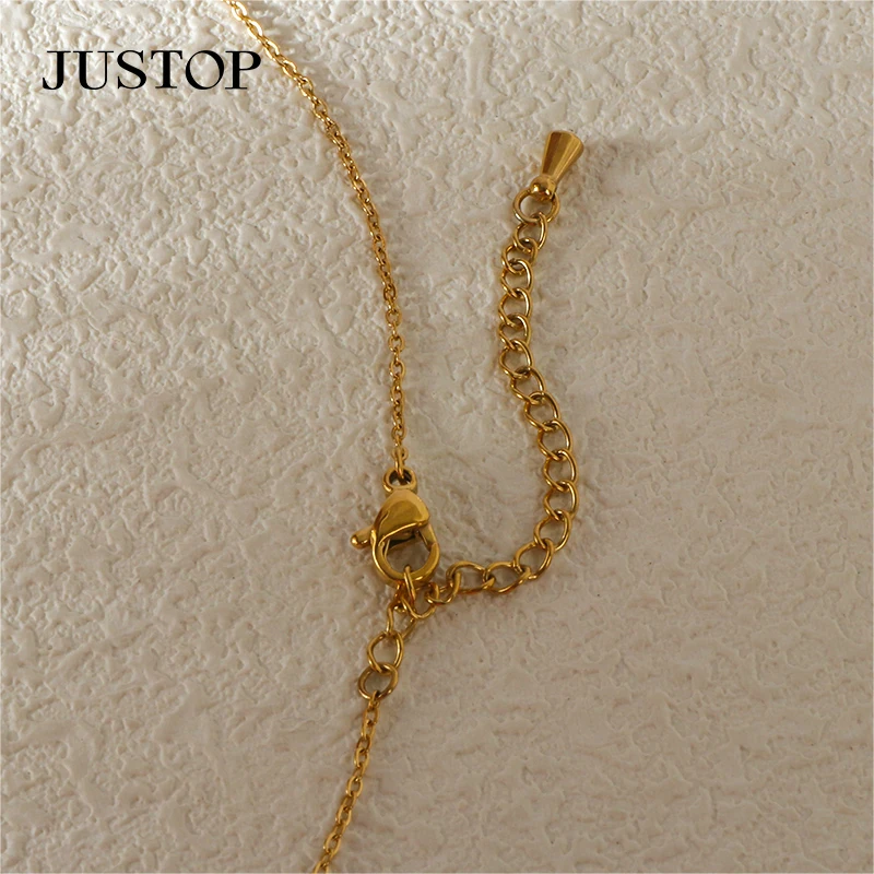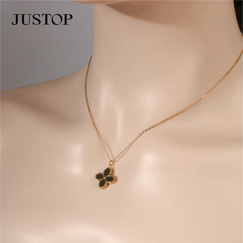 Lucky Four Leaf Flower Charm Dripping Oil Pendant Link Chain Necklace 18K Gold Plated Stainless Steel Fashion Jewelry for Women