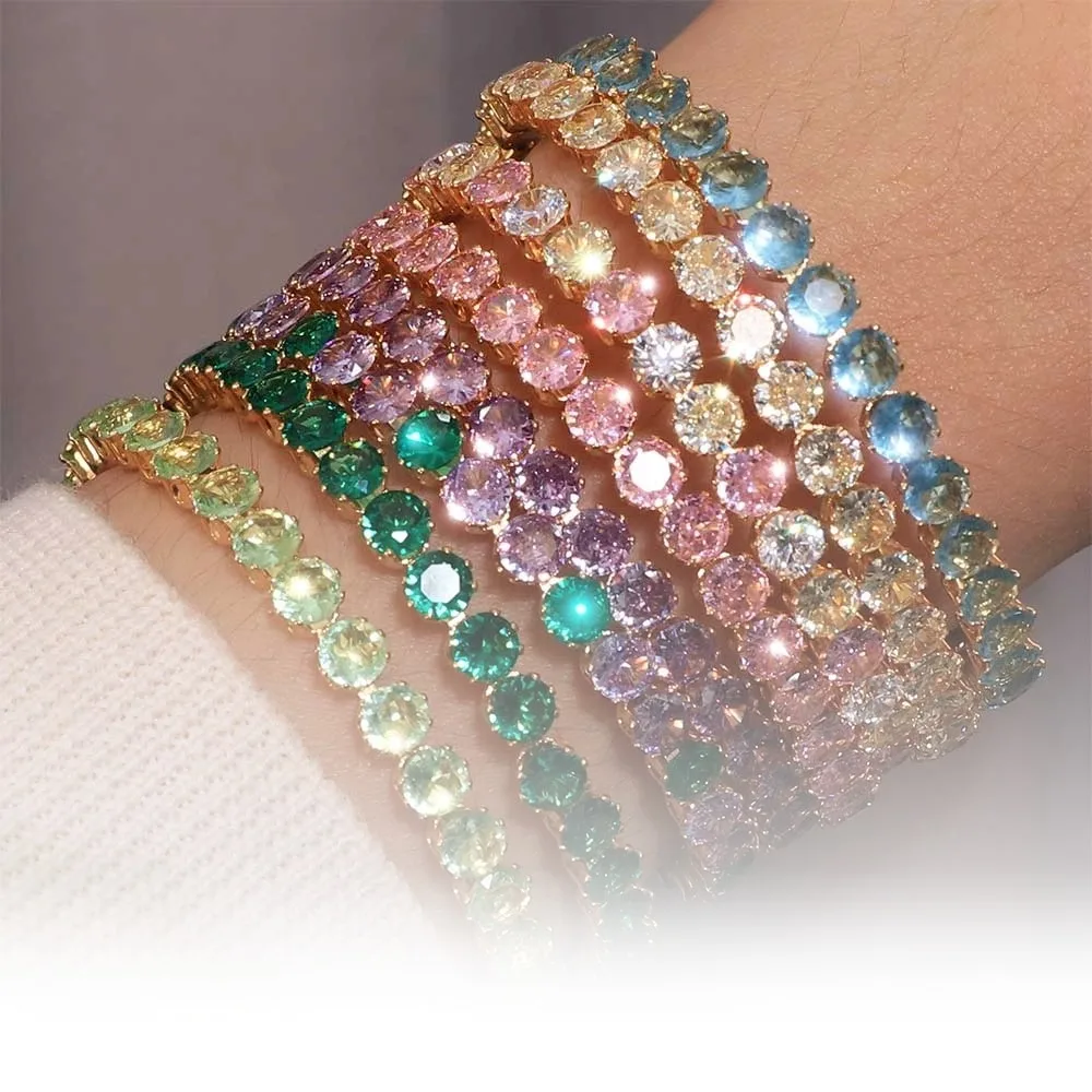 Women's Stainless Steel Fine Jewelry Tennis Bracelet Green Emerald CROWN Claw Setting Transparent Cubic Fashionable Bangles