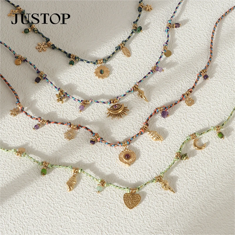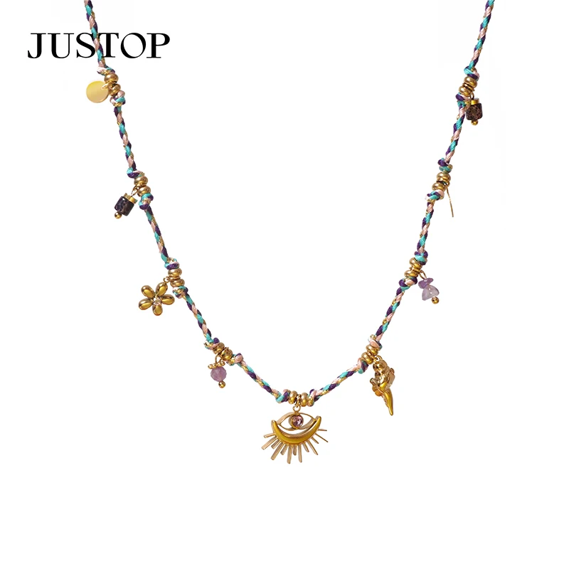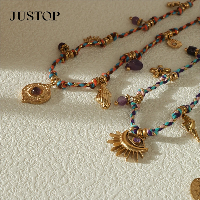 Non Tarnish Evil Eye Jewelry Necklace Heart Charm 18K Gold Devil Eye Necklace Crystal Rhinestone Amethyst Lucky Stone Necklace