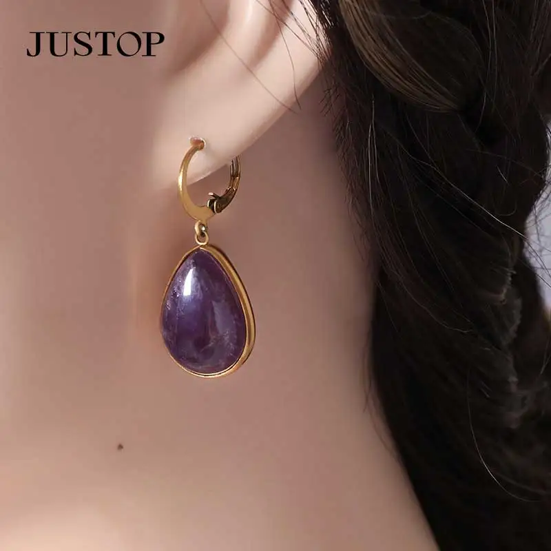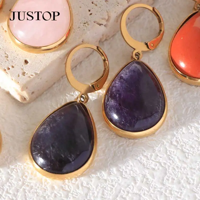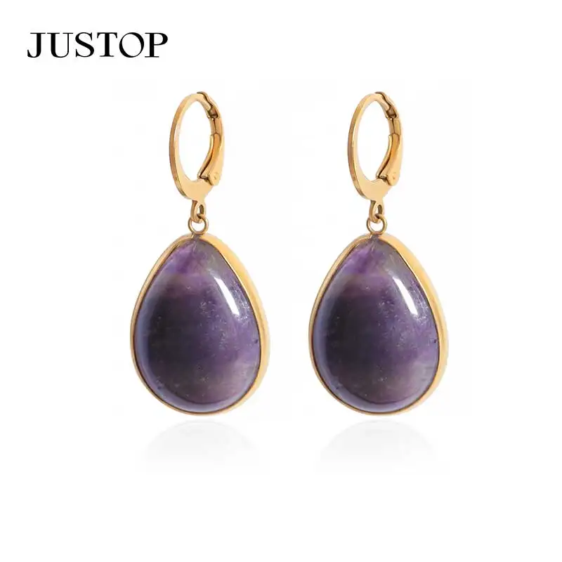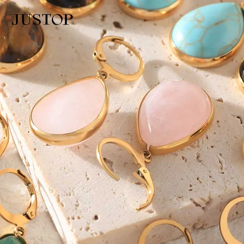 Tiger Eye Natural Agate Water Drop Earring 18K Gold Plated Stainless Steel Stud Trendy Wholesale Jewelry for Women's Party Fit