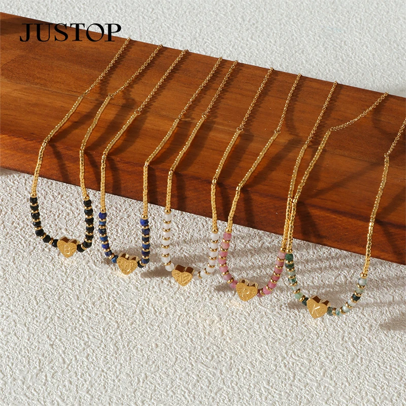 Statement Necklace Logo Words Making Pendant Charm Necklace 18K Gold Plated Natural Stone Join Chain Stainless Steel Fashion