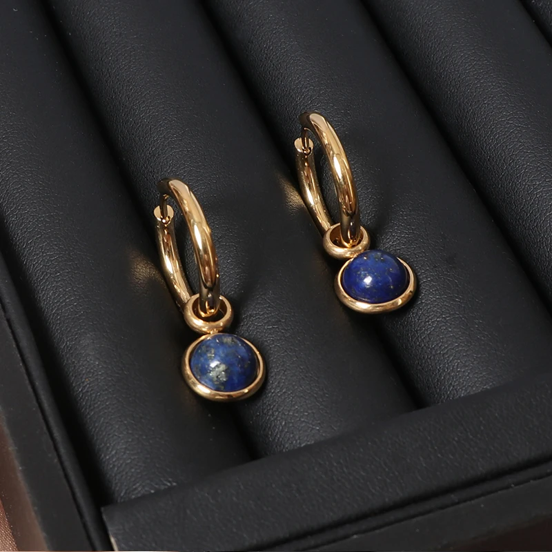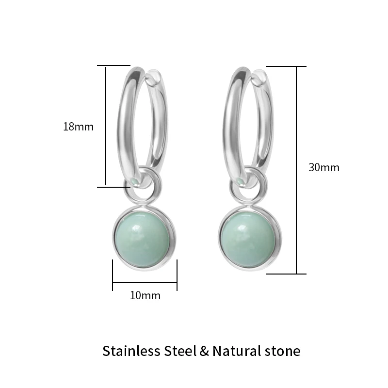 Women's Stainless Steel Birth Stone Pendant Earrings Waterproof Fashion 18K PVD Plated Natural Small Healing Stone