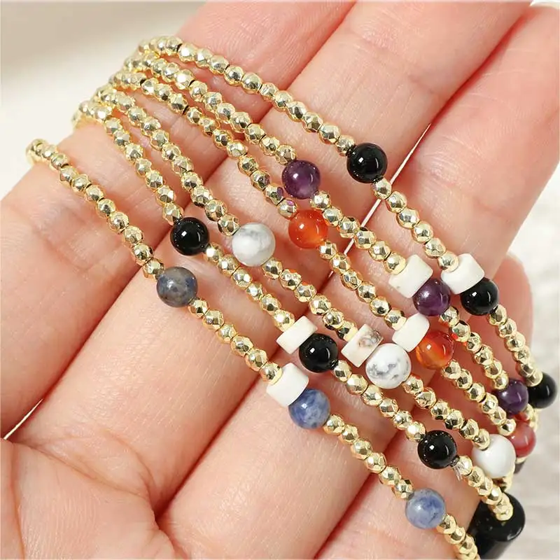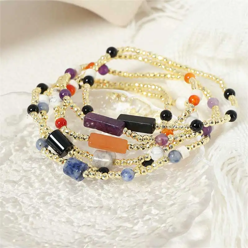 Tarnish-Free Stainless Steel Satellite Chain Bracelets Gold-Plated Charm Natural Rainbow Moonstone Gemstone Beads Natural Stone