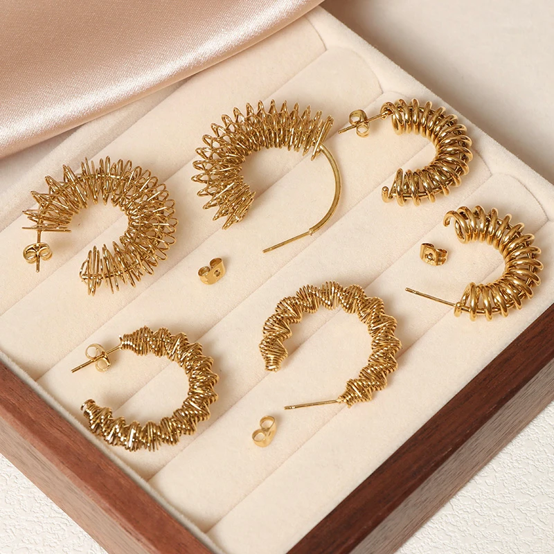 Real 18K Gold PVD Earrings Unique Design Hypoallergenic Hoop Earrings Lightweight Twisted Huggie Earrings for Women