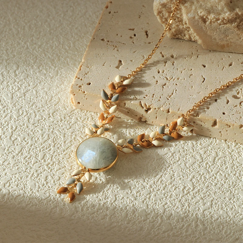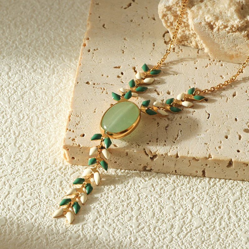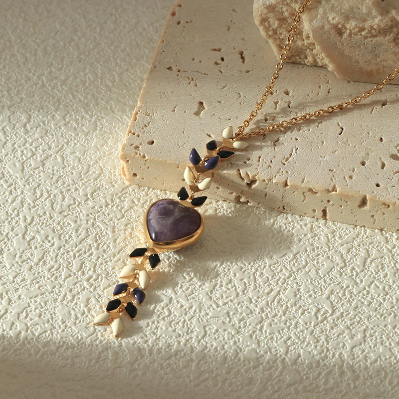 Heart Stone Charm Natural Stone Necklace Custom Pendant 18K Gold Plated Chain for Jewelry Making Stainless Steel Link Chain