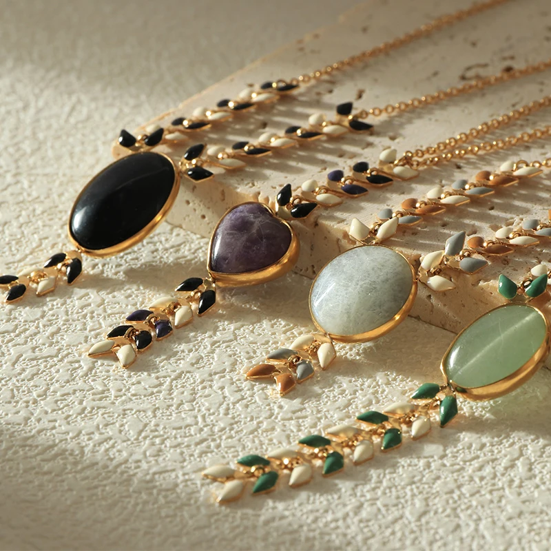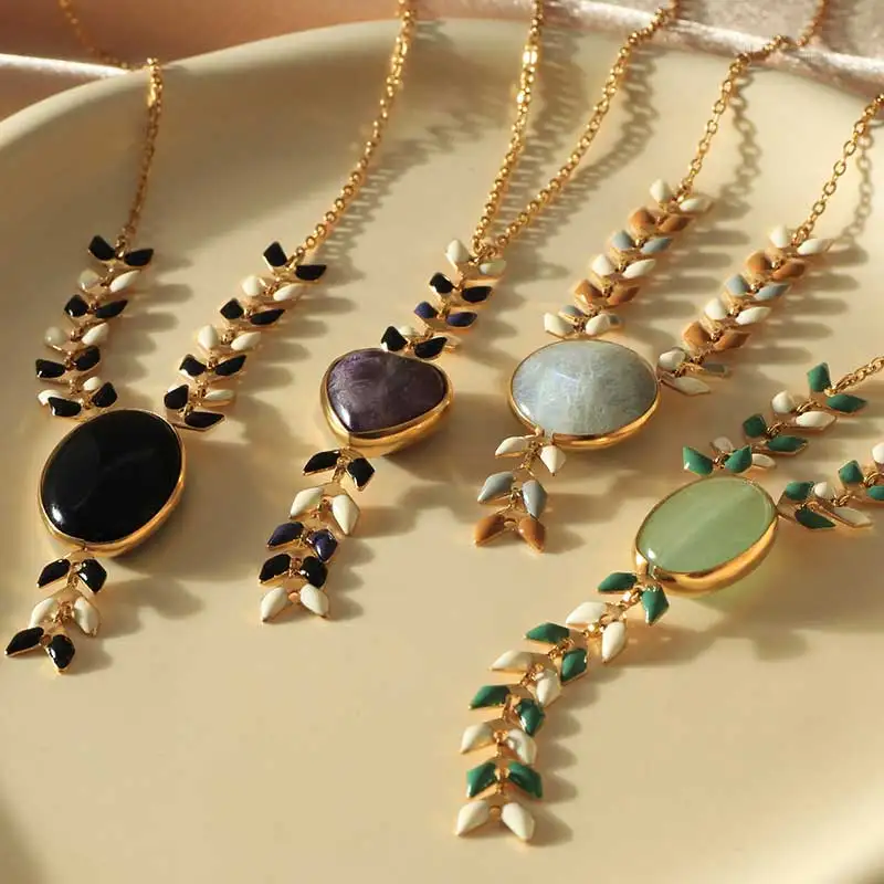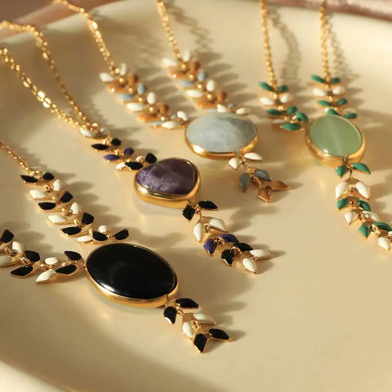 Autumn Series New Design Necklace With Stone Charm Pendant Warm Jewelry Link Chain Colliers for Women Gift Clothing Matching