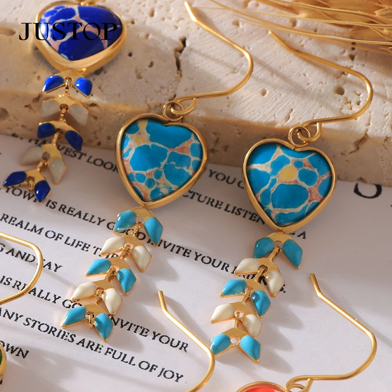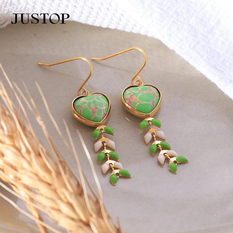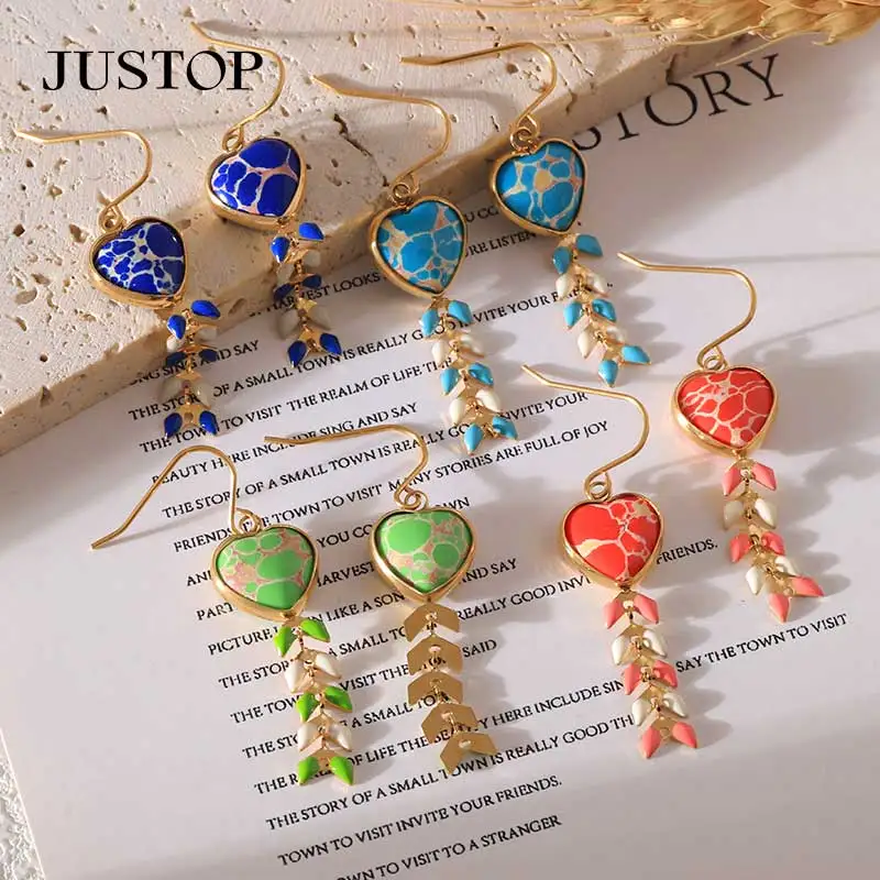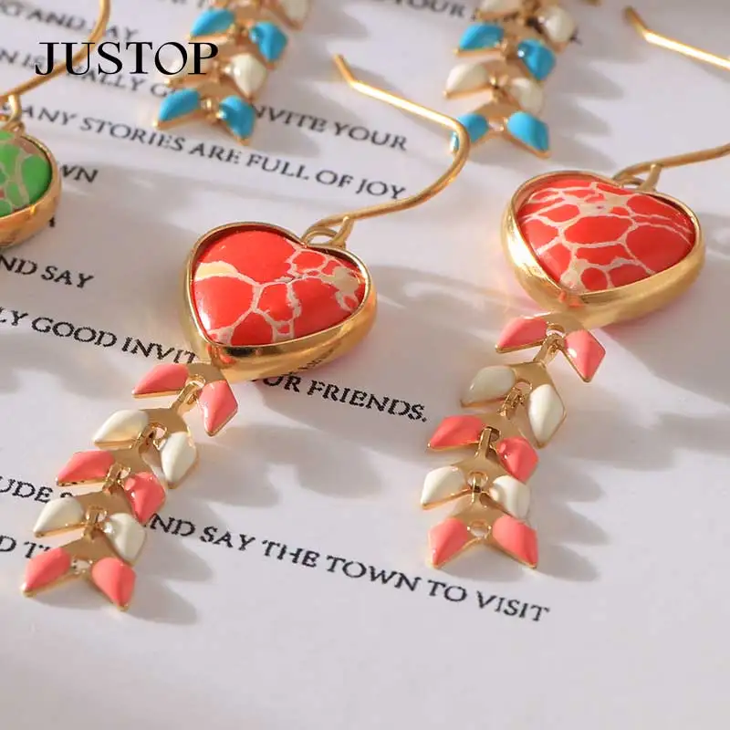 Bulk Natural Crystal Turquoise Stone Earrings 18K Gold Stud Jewelry with Flower Pattern Ear Drop Design for Women