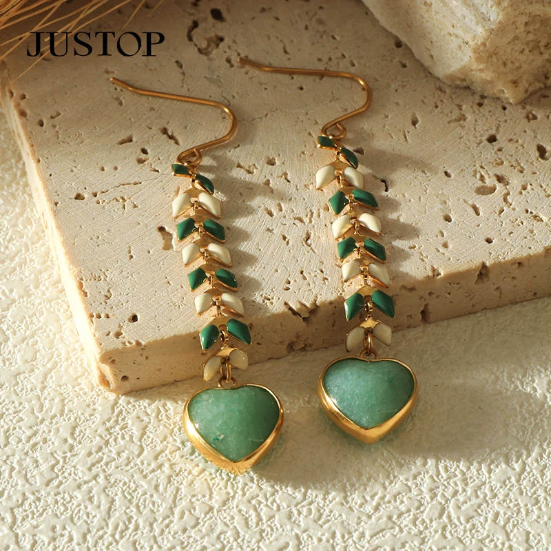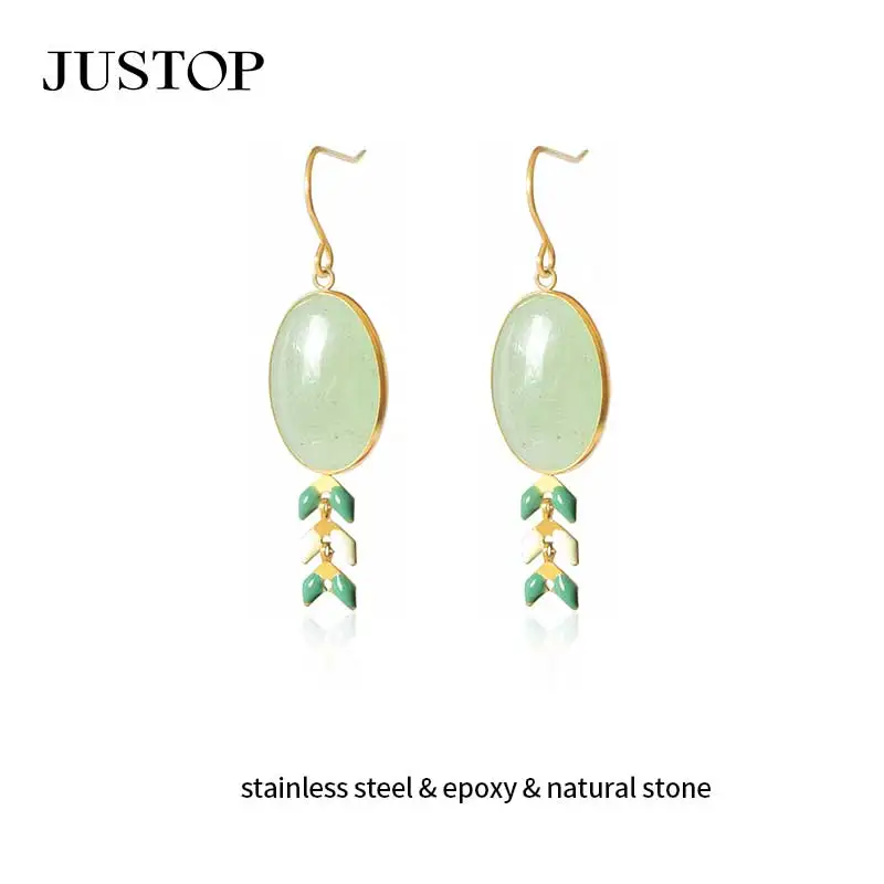 Trendy Ball Shape Charm Earrings Green Stone Unisex Party Jewelry 18K Gold Plated Stainless Steel