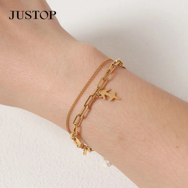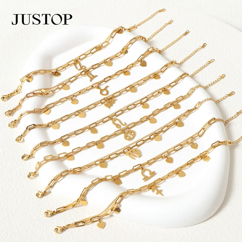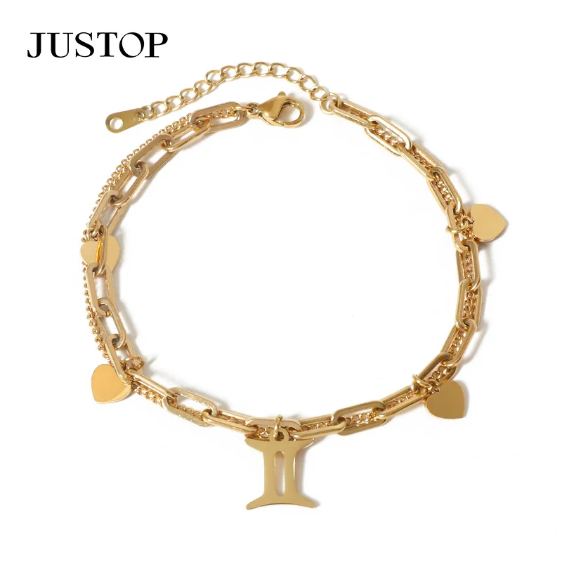 Real 18K Gold Plated Bracelets 12 Constellations Charm Link Chain 2 Layers Stainless Steel Brand Gift for Women Men Kids Jewelry