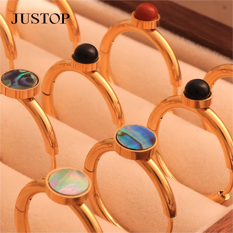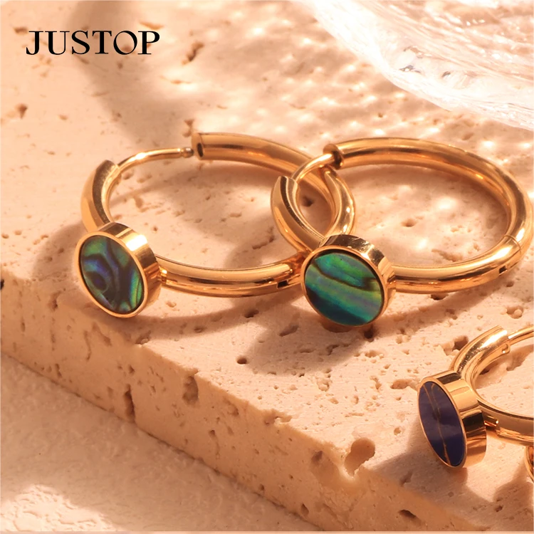 Wholesale Luxury Natural Stone Hoop Earrings Stainless Steel with Gold Plating Trendy Jewelry Non-Tarnish