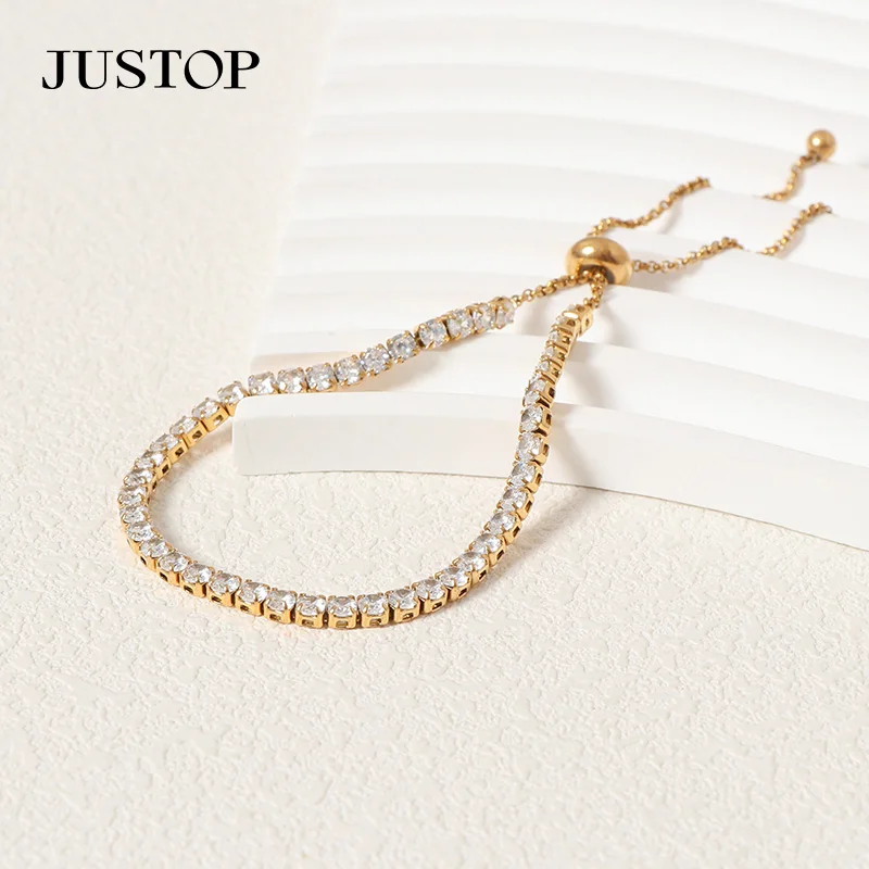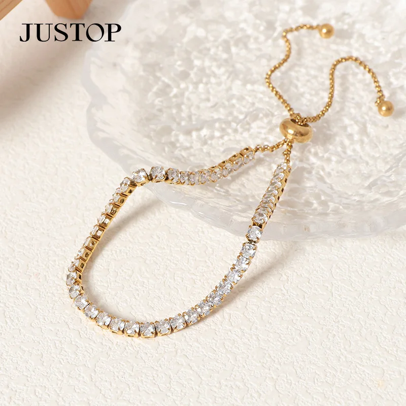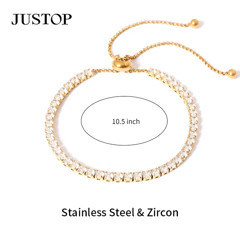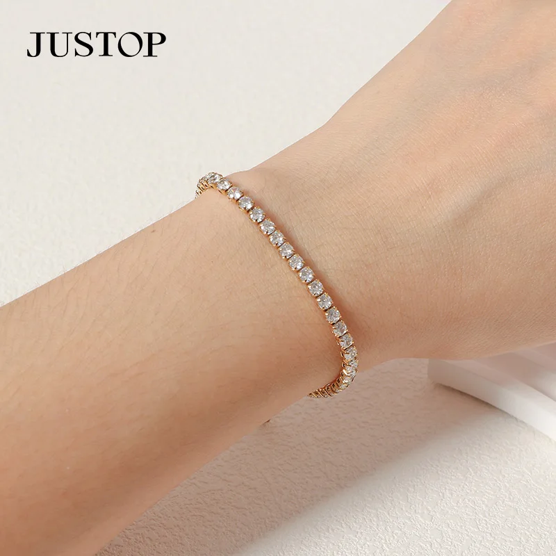 Womens Personalized Charms Jewelry 18K Gold Plated Sparkling CZ Zircon Diamond Bridal Wedding Tennis Chain Bracelet