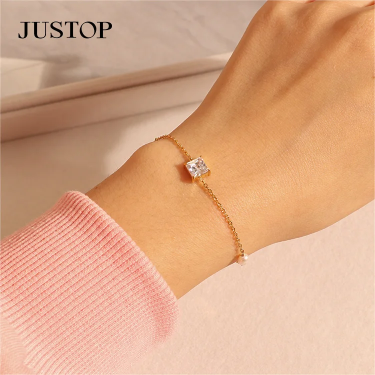 Fashion 18k Gold Plated Colorful Elegant Stainless Steel Charm Bracelet Geometric Design Trendy Women's Zircon Crystal