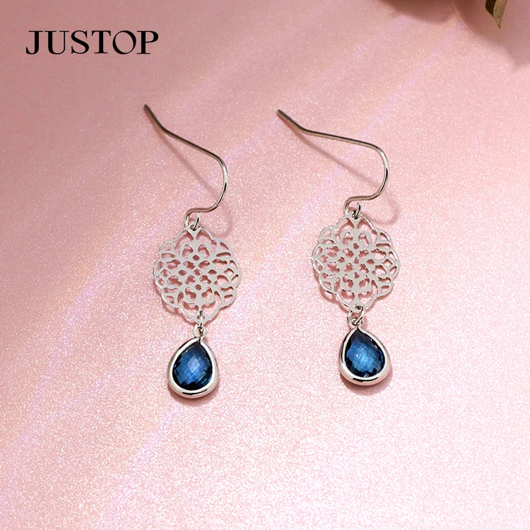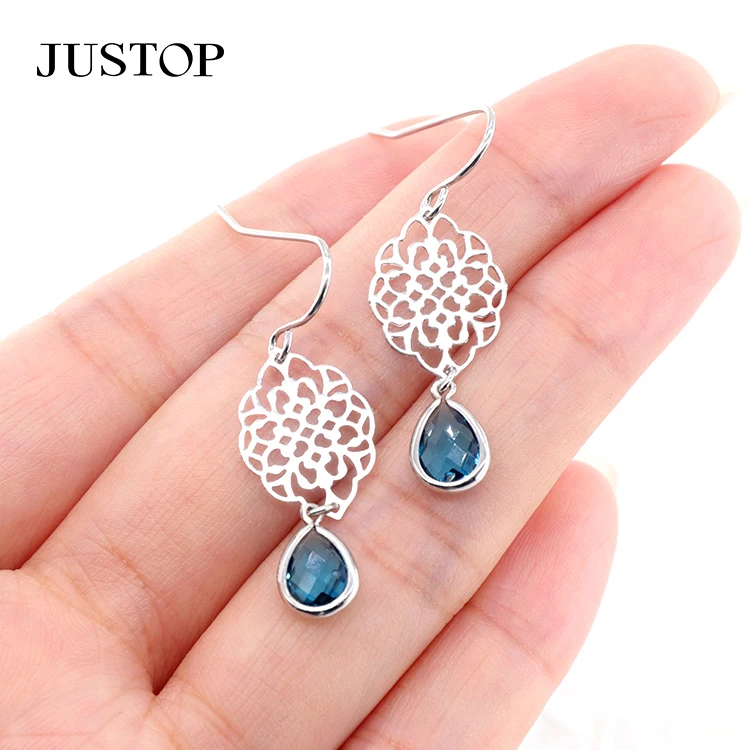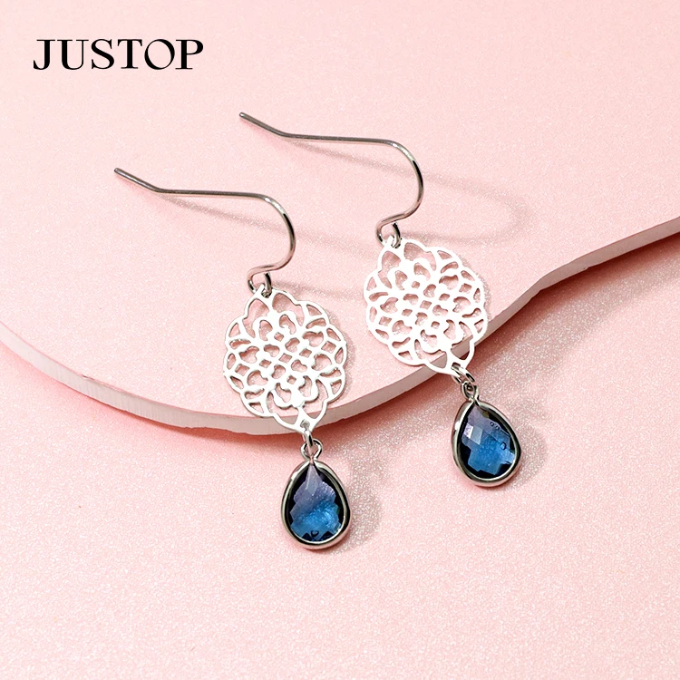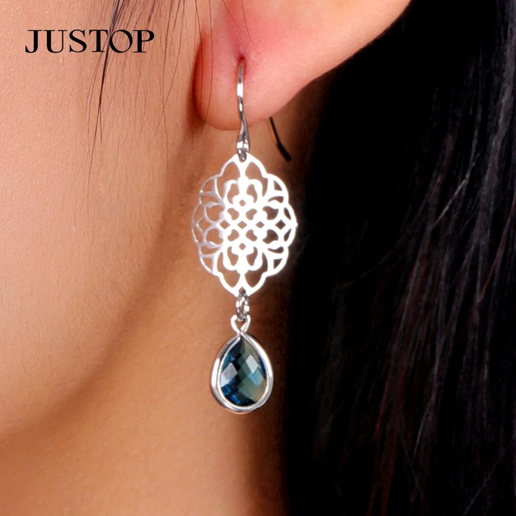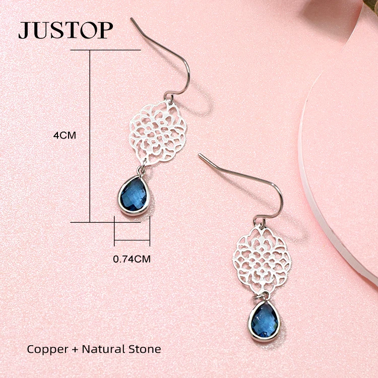 Christmas Trendy Natural Stone Stud Leaf Charm Gold Plated Hollow Brass Dangle Pendant Hook Earring Jewelry for Women Wholesale