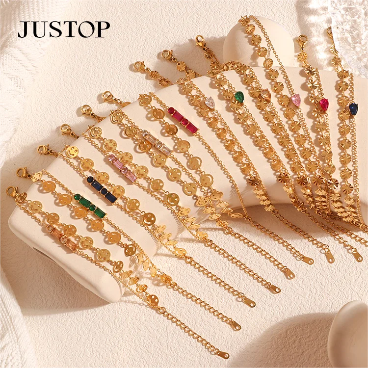 Wholesale Stainless Steel 18k Gold Plated Bracelet Elasticity Heart Crystal Bracelets for Women Jewelry