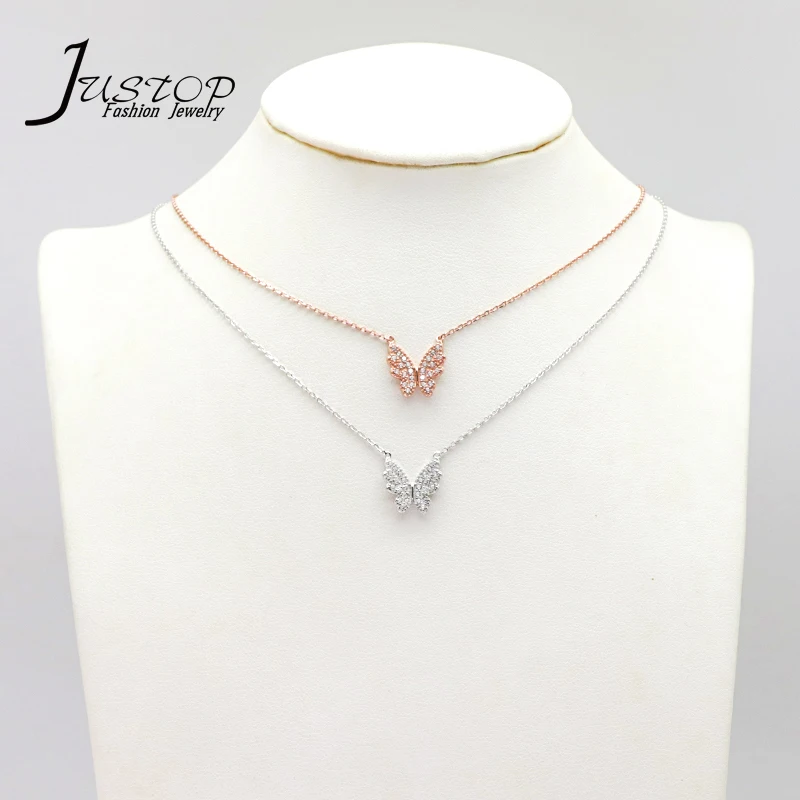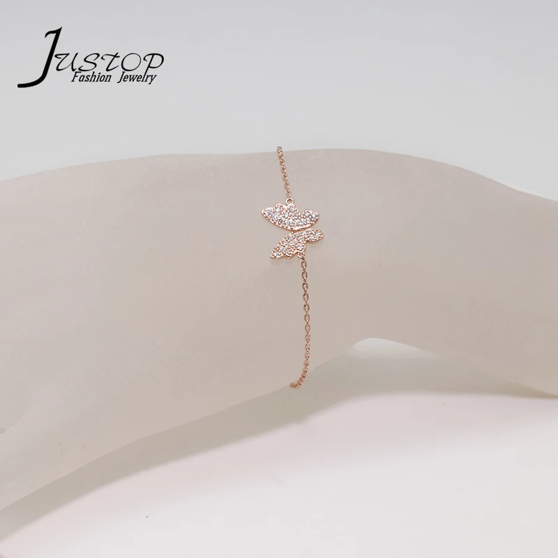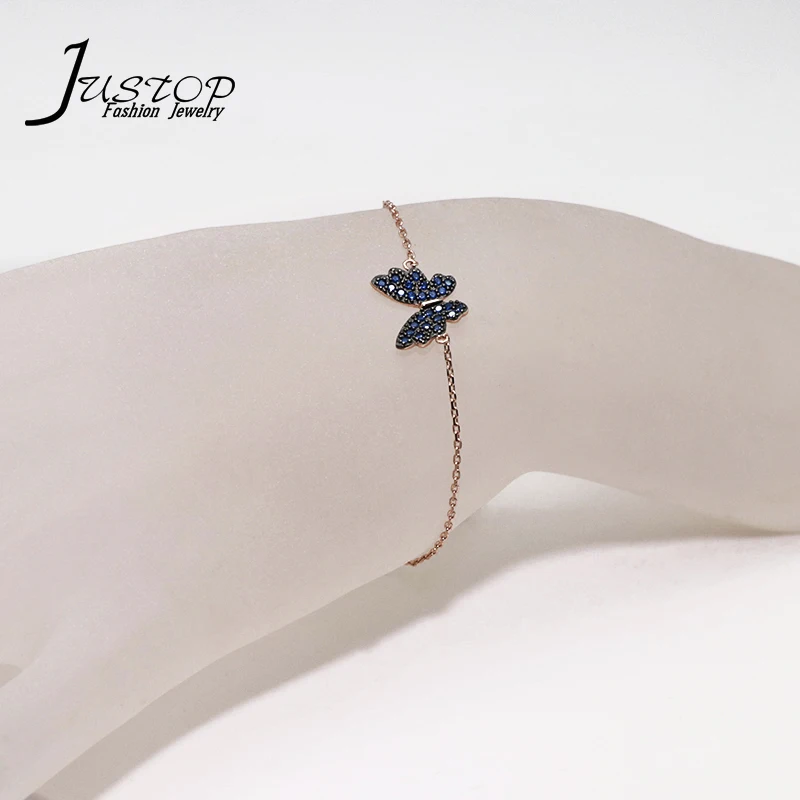 Women's Fine Jewelry 925 Sterling Silver 18K Gold Plated Zircon Blue Butterfly Charms on Link Chain Bracelets