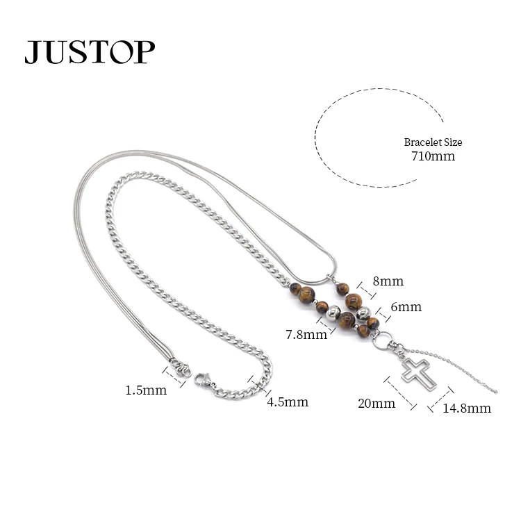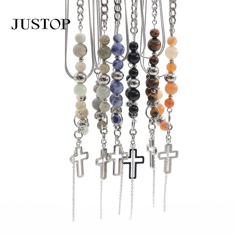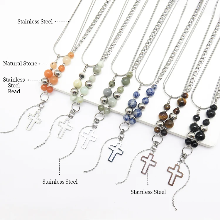 Beads Cross Yoke Jesus Charm Pendant Jewelry Chain Stainless Steel Charm Silver Designer Necklace Gift