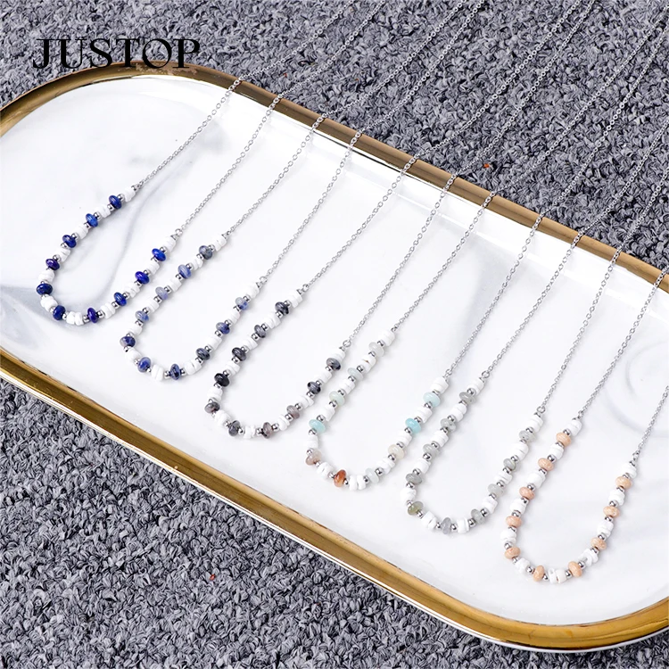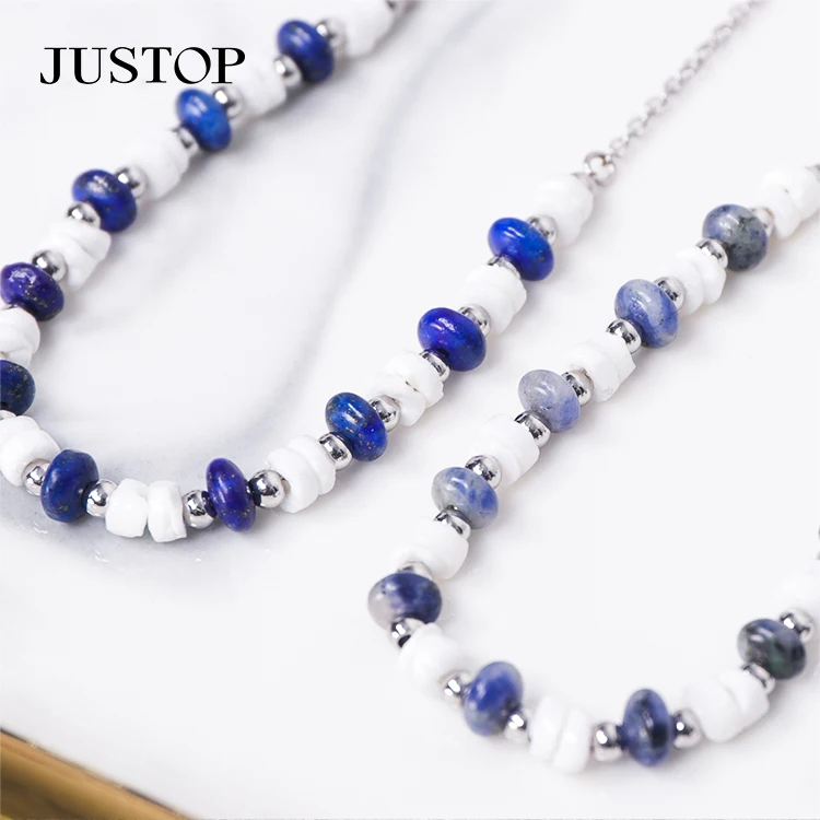 Custom Natural Crystal Stone Garnet Lapis Lazuli Pendant Choker Bead Necklace Making Supplies Stainless Steel Chain
