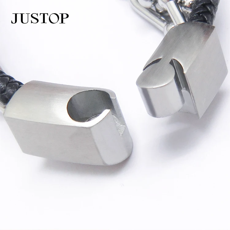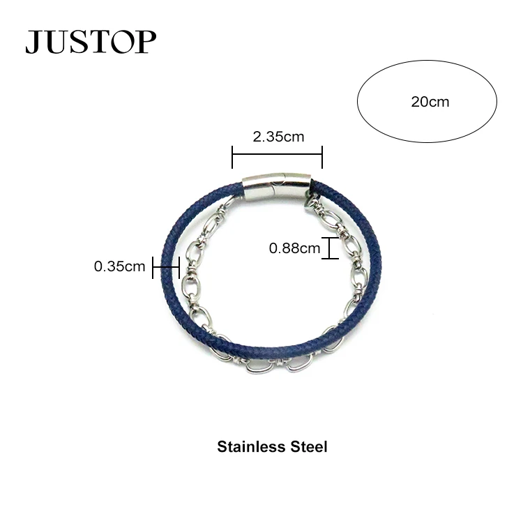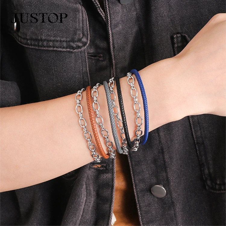 High Quality Simple Double Layer Stainless Steel Chain Leather Bracelet Bangle Men's Fashion Accessory