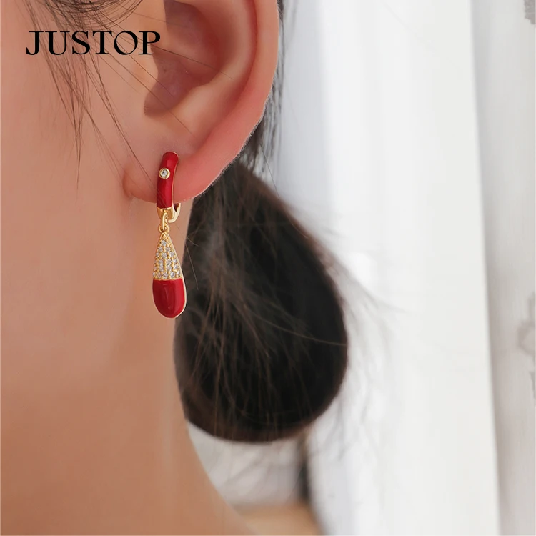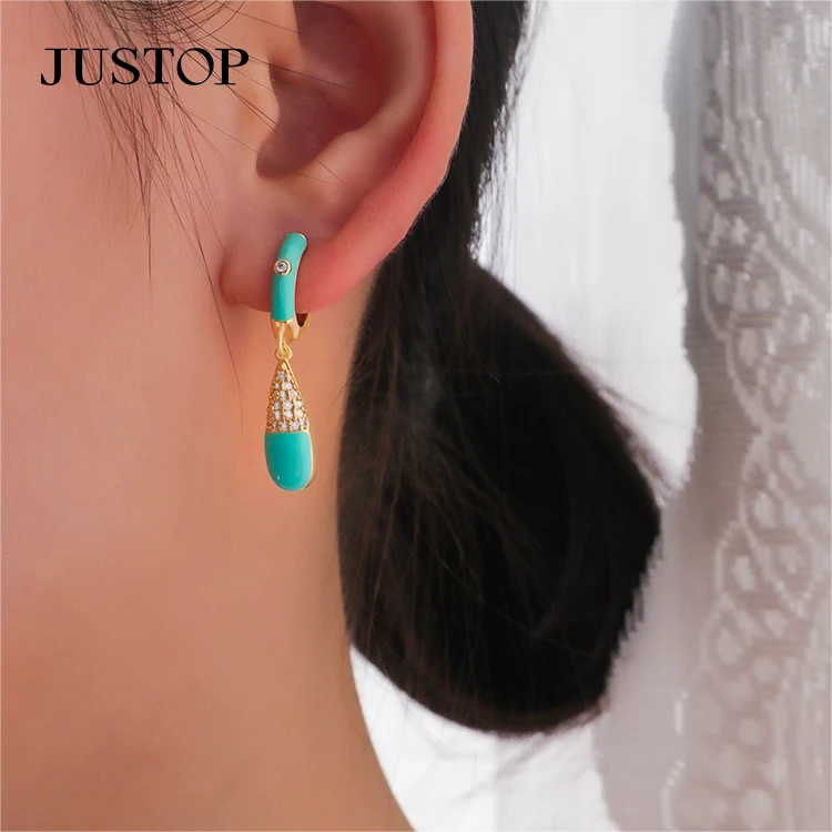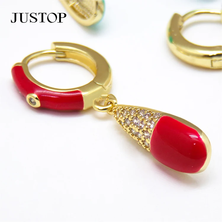 Wholesale New Design Brass Gold Plated Vintage Hoop Drop Charm Pendant Earring Geometric Zircon Jewelry for Women Trendy Style