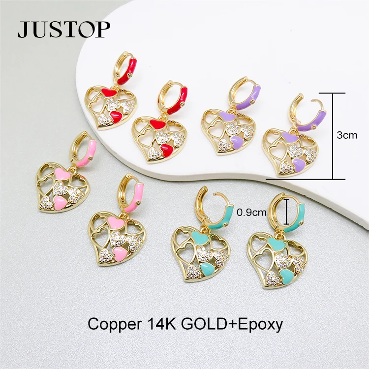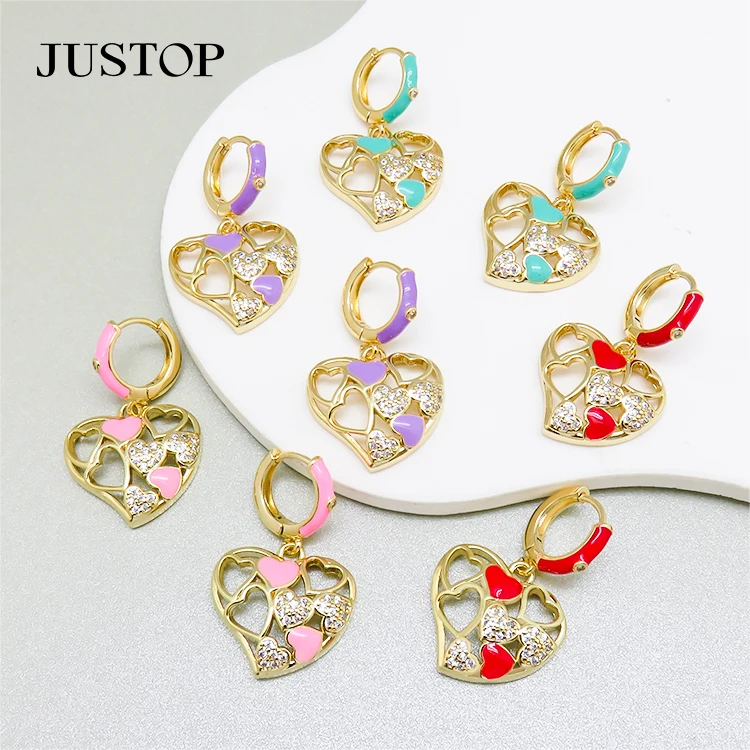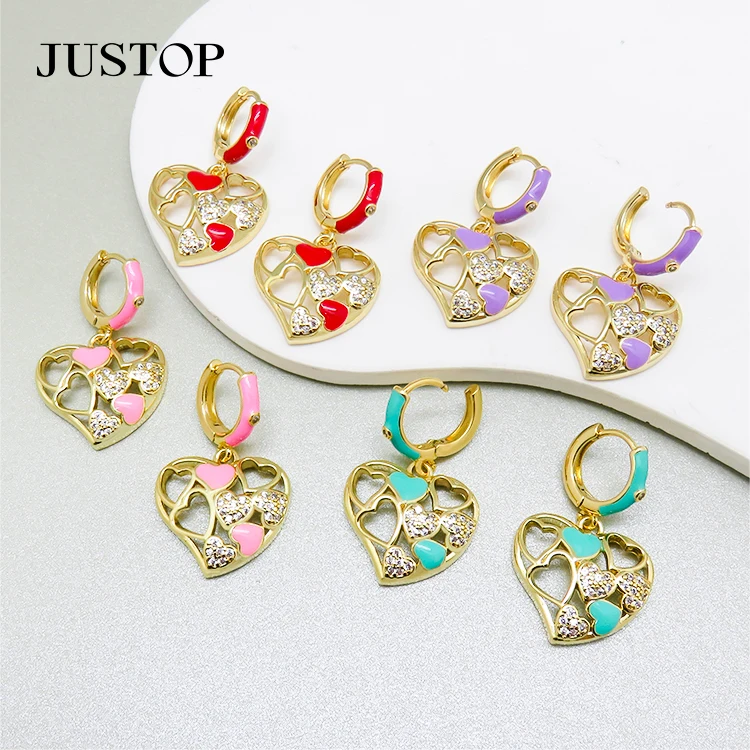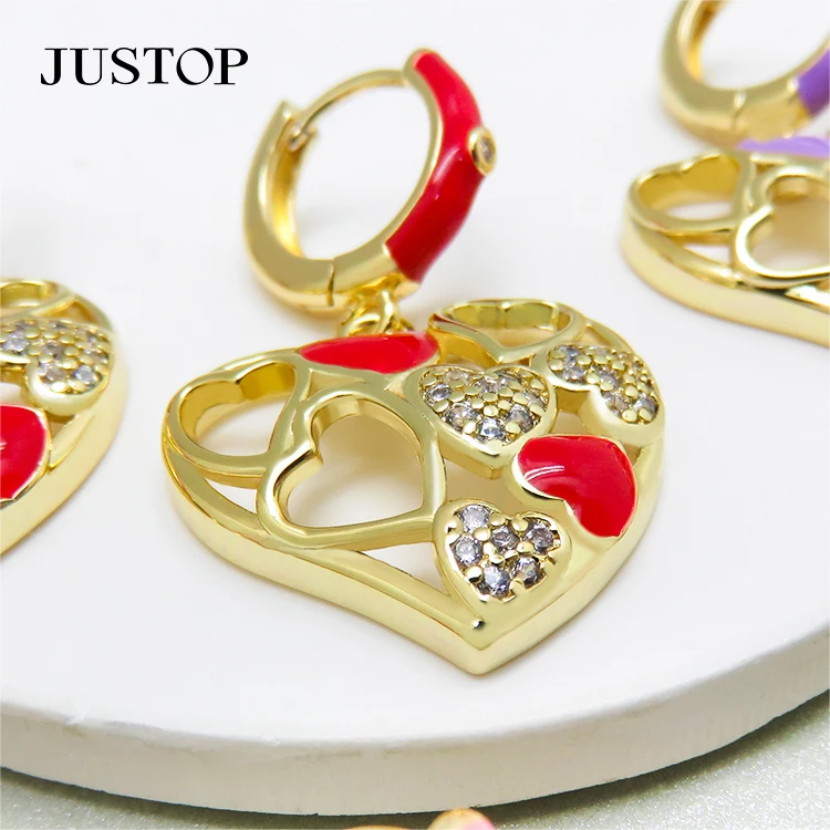 Women's Retro Fashion Bulk Earrings Gold Plated Brass Love Zircon Design Celeb Inspired Pendant with Personal Sense Temperament