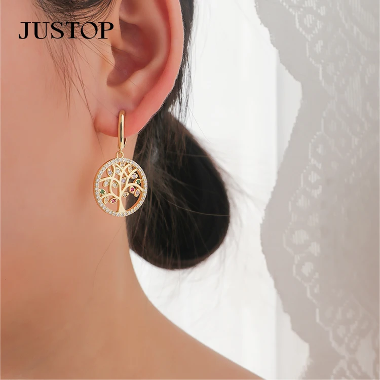 Wholesale Jewelry Factory Service Custom Tree of Life Design With Zircon Drop Earrings for Women Supplier