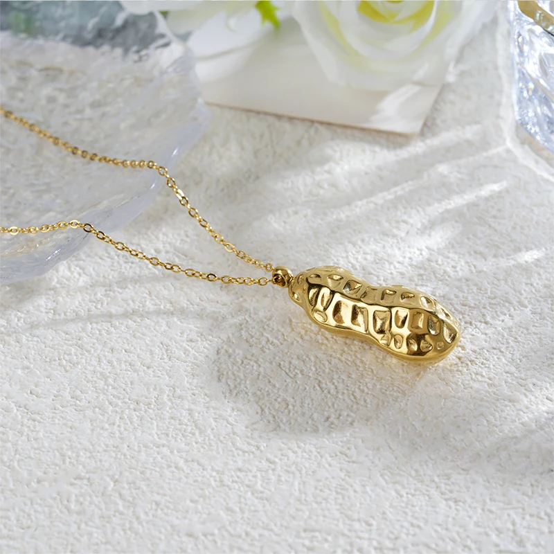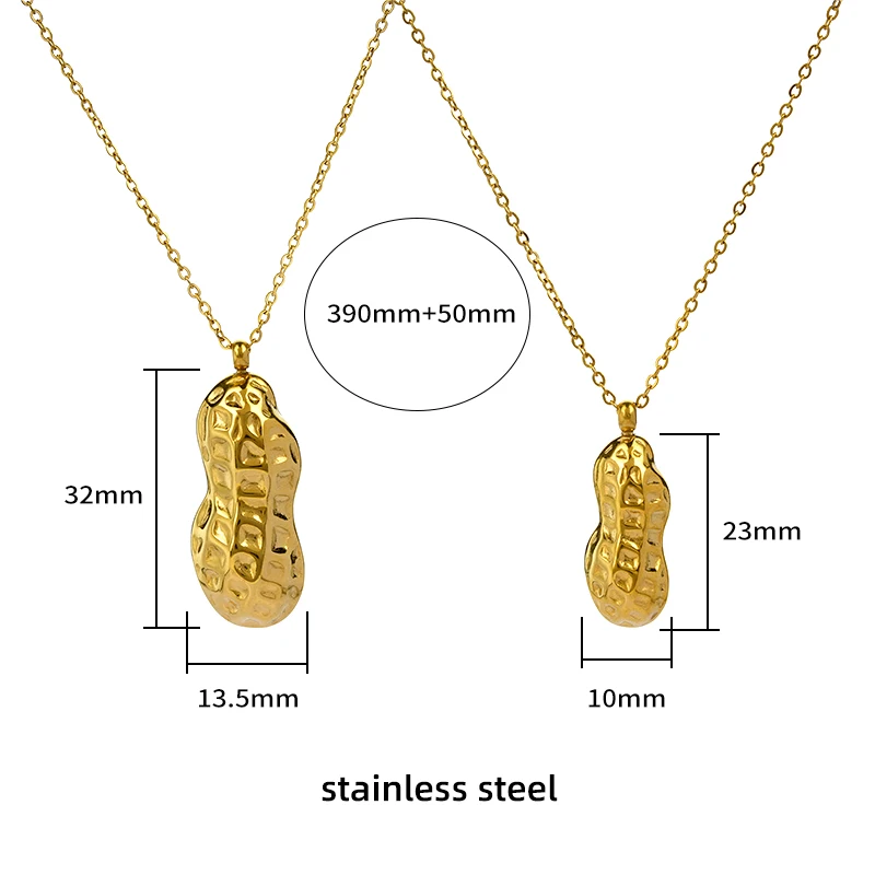 Peanut Shape Charm Pendant Necklace with Link Chain Trendy 18K Gold Plated Stainless Steel Jewelry Set for Women Casual Fashion