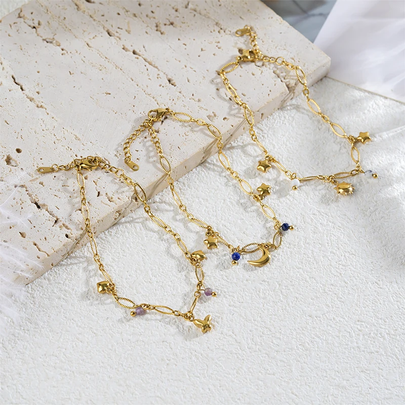 Real 18K Gold Plated Stainless Steel Waterproof Elegant Luxury High-End Chain Link Hollow Lace Wide Version Bracelet Fashion